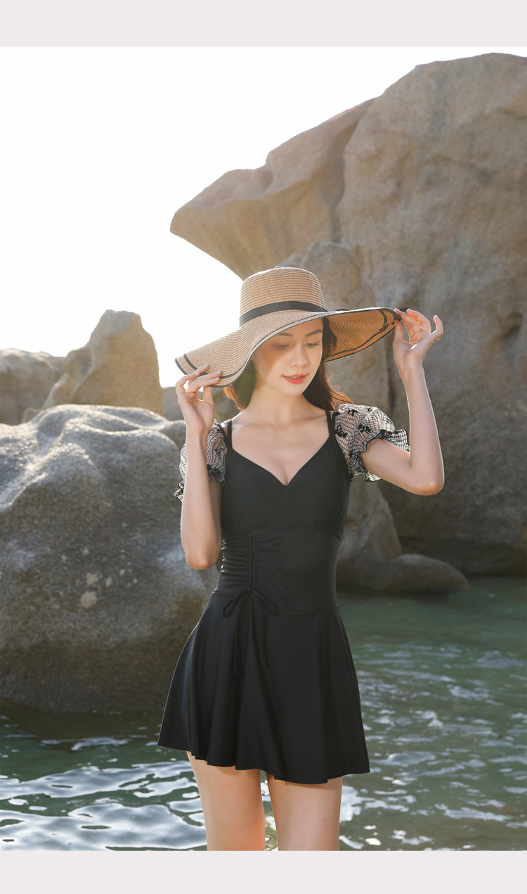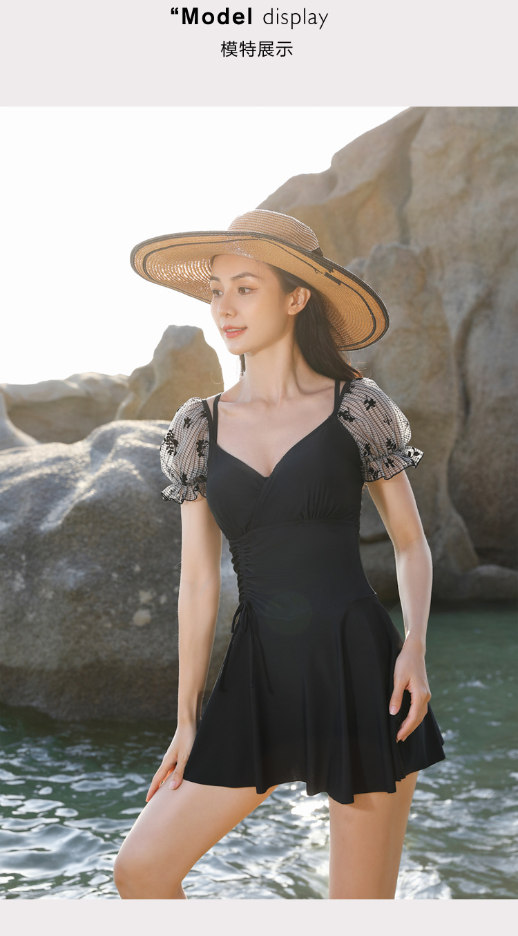 수영복 여성용 새로운 반팔 플러스 사이즈 통통녀 온천 개더업 사이즈 가슴 원피스 스커트 섹시 슬림 배꼽 커버 수영복스토어 가기