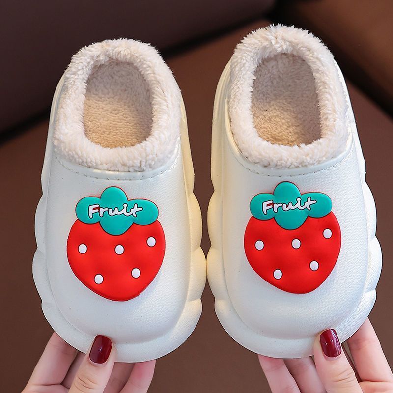 새 집 어린이 면화 신발 겨울 기모 따뜻한 방수 미끄럼 방지 과일 만화 소년과 소녀를위한 아기 면화 슬리퍼