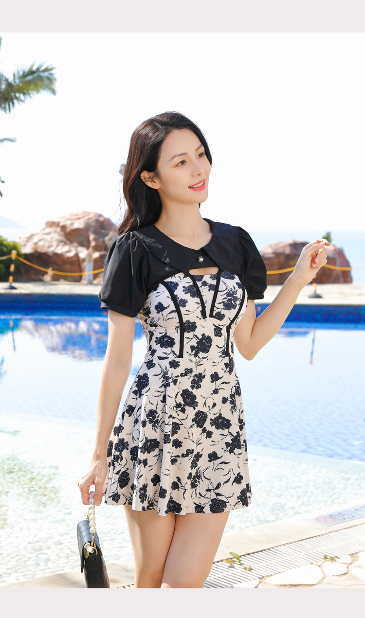 수영복 여성용 숄 반팔 플러스 사이즈 통통녀 온천 푸시업 사이즈 가슴 원피스 스커트 플랫 코너 슬림 배꼽 덮개 수영복스토어 가기