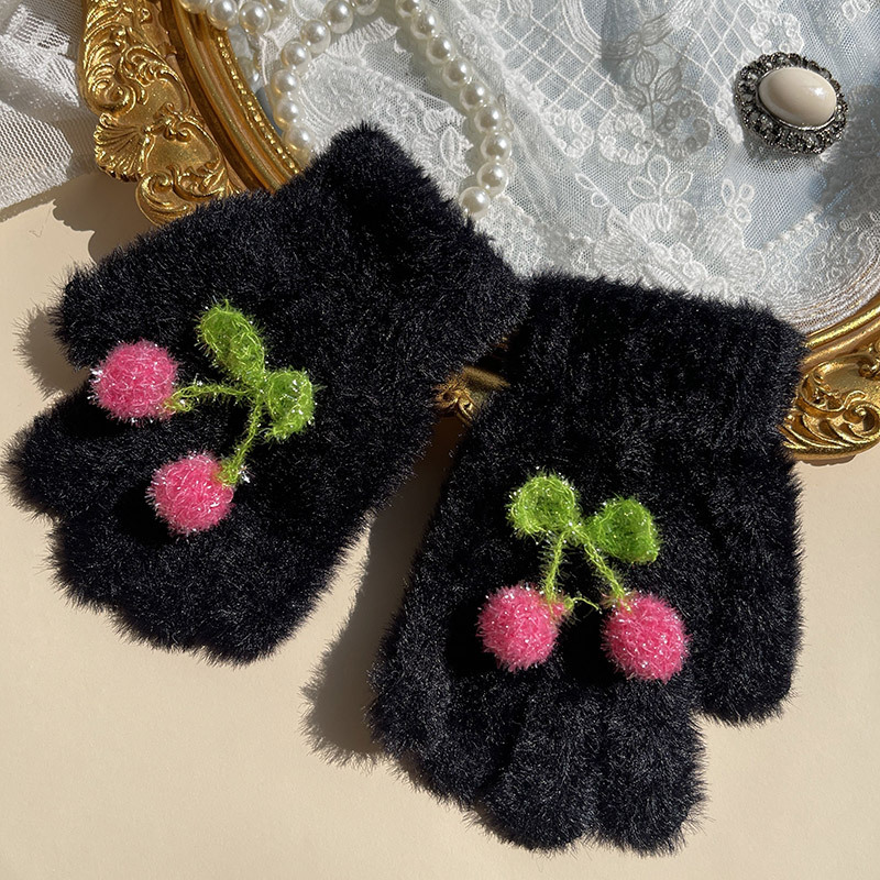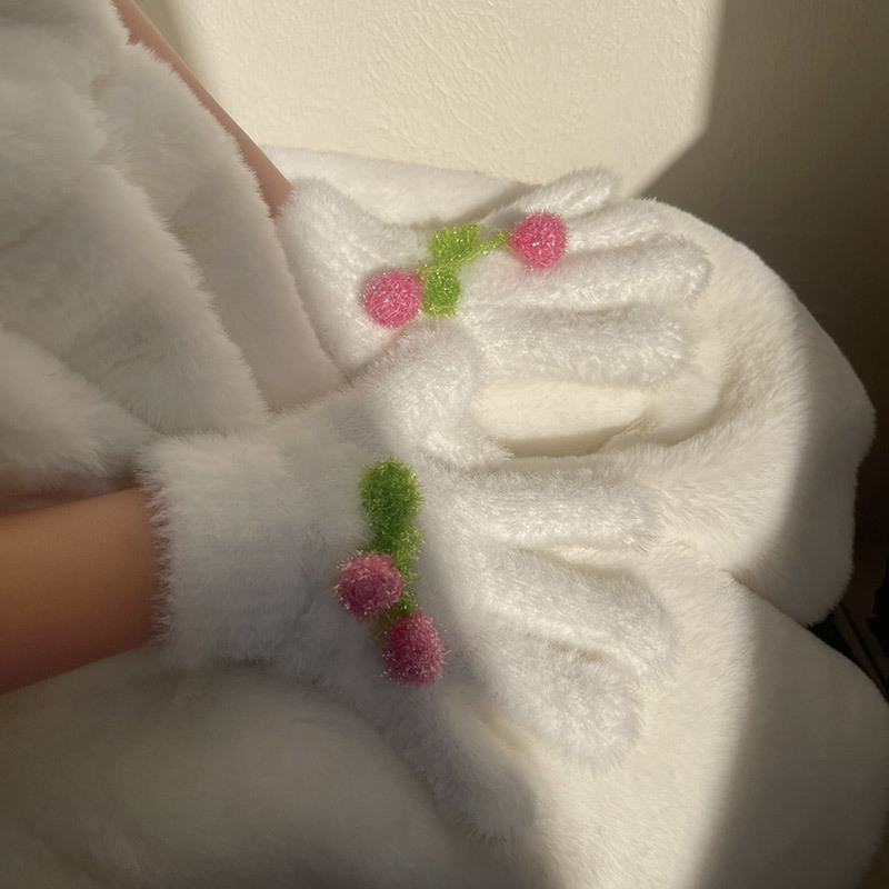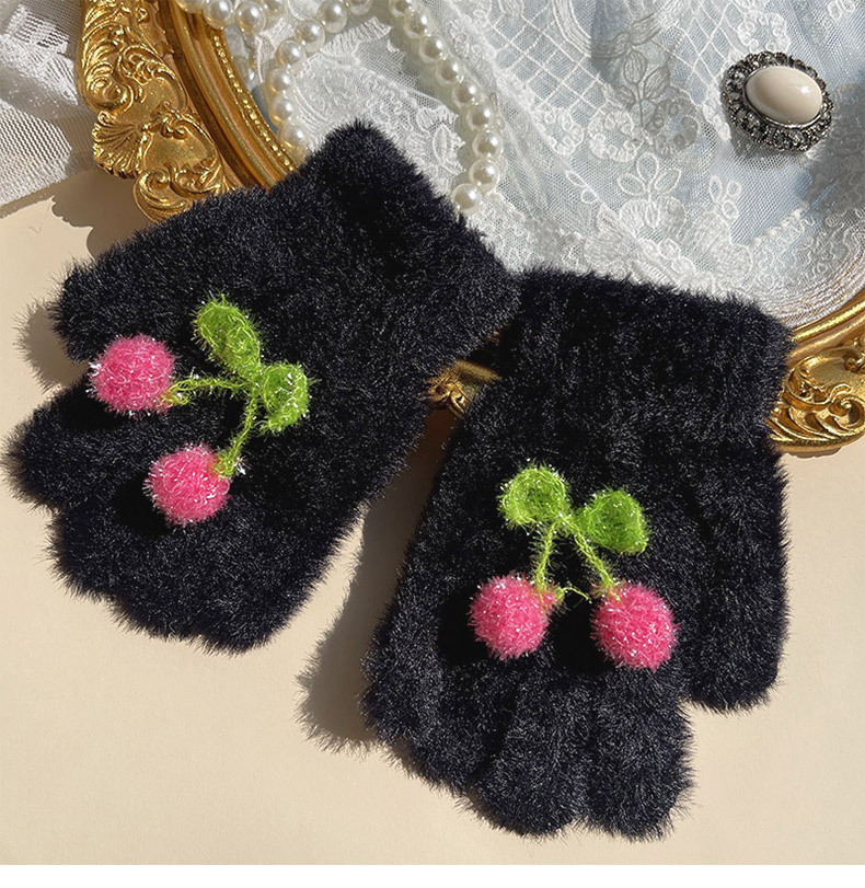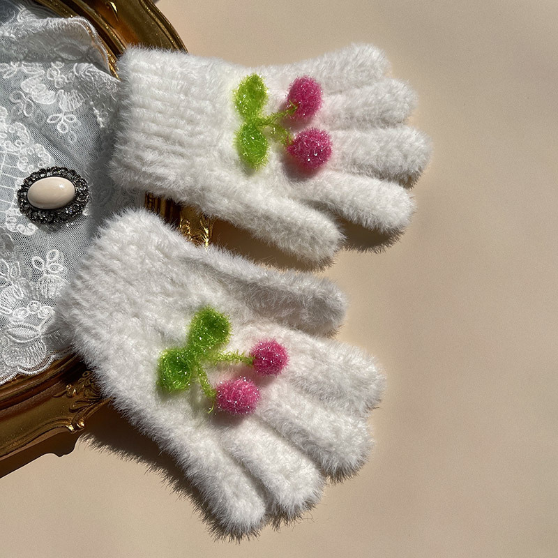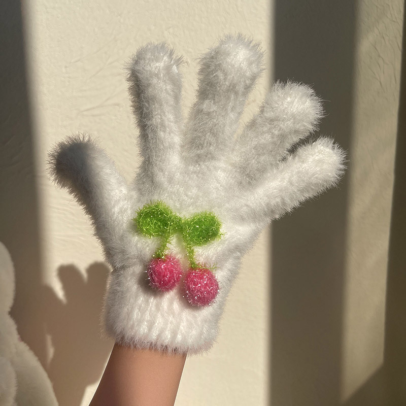 핫문 겨울 새로운 귀여운 반짝이 체리 아기 소녀와 어린이 학생 렉스 토끼 머리 따뜻한 손가락 장갑스토어 가기