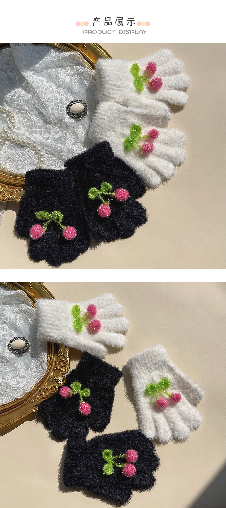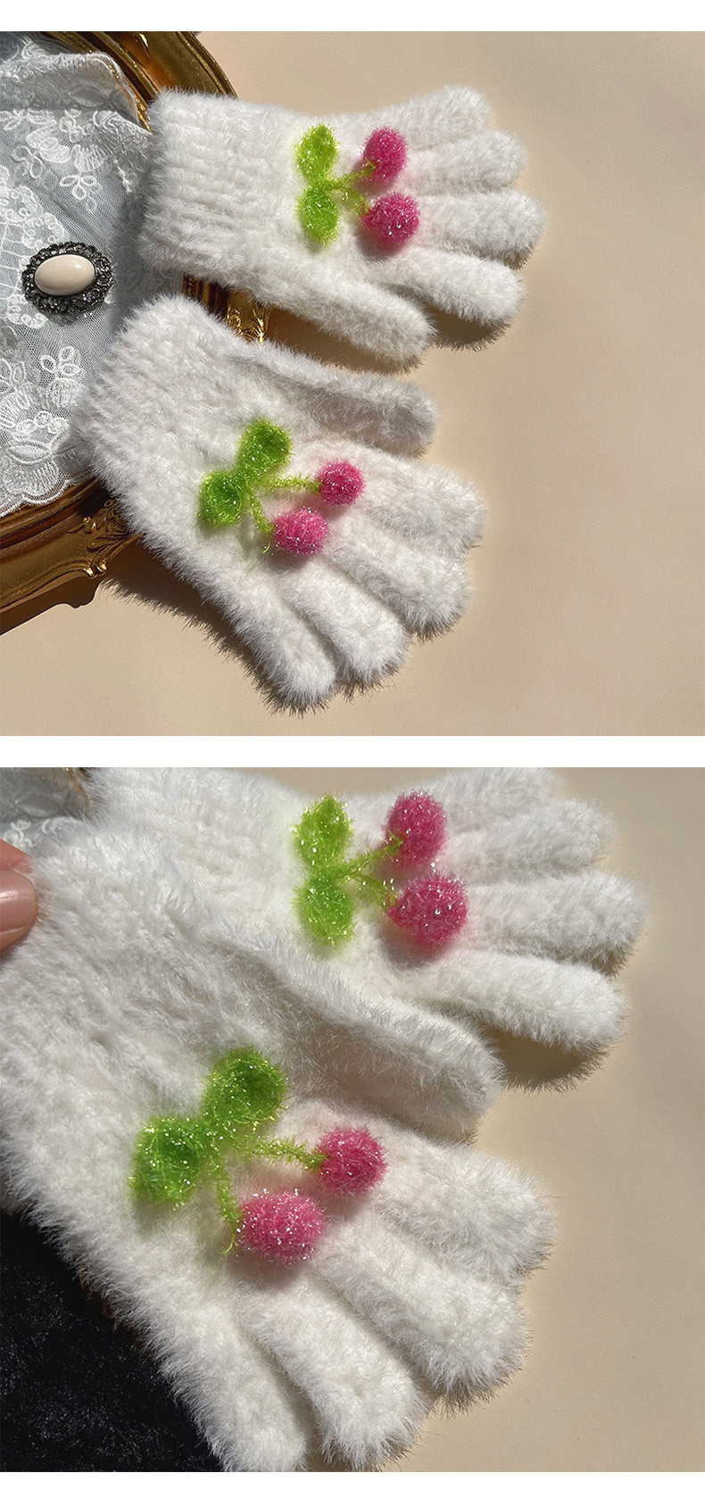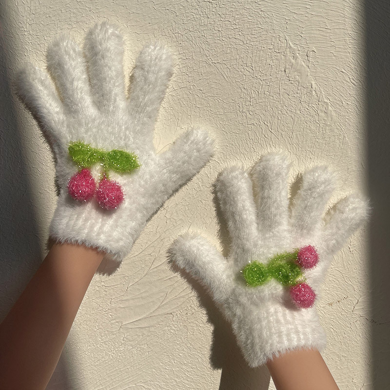 핫문 겨울 새로운 귀여운 반짝이 체리 아기 소녀와 어린이 학생 렉스 토끼 머리 따뜻한 손가락 장갑스토어 가기
