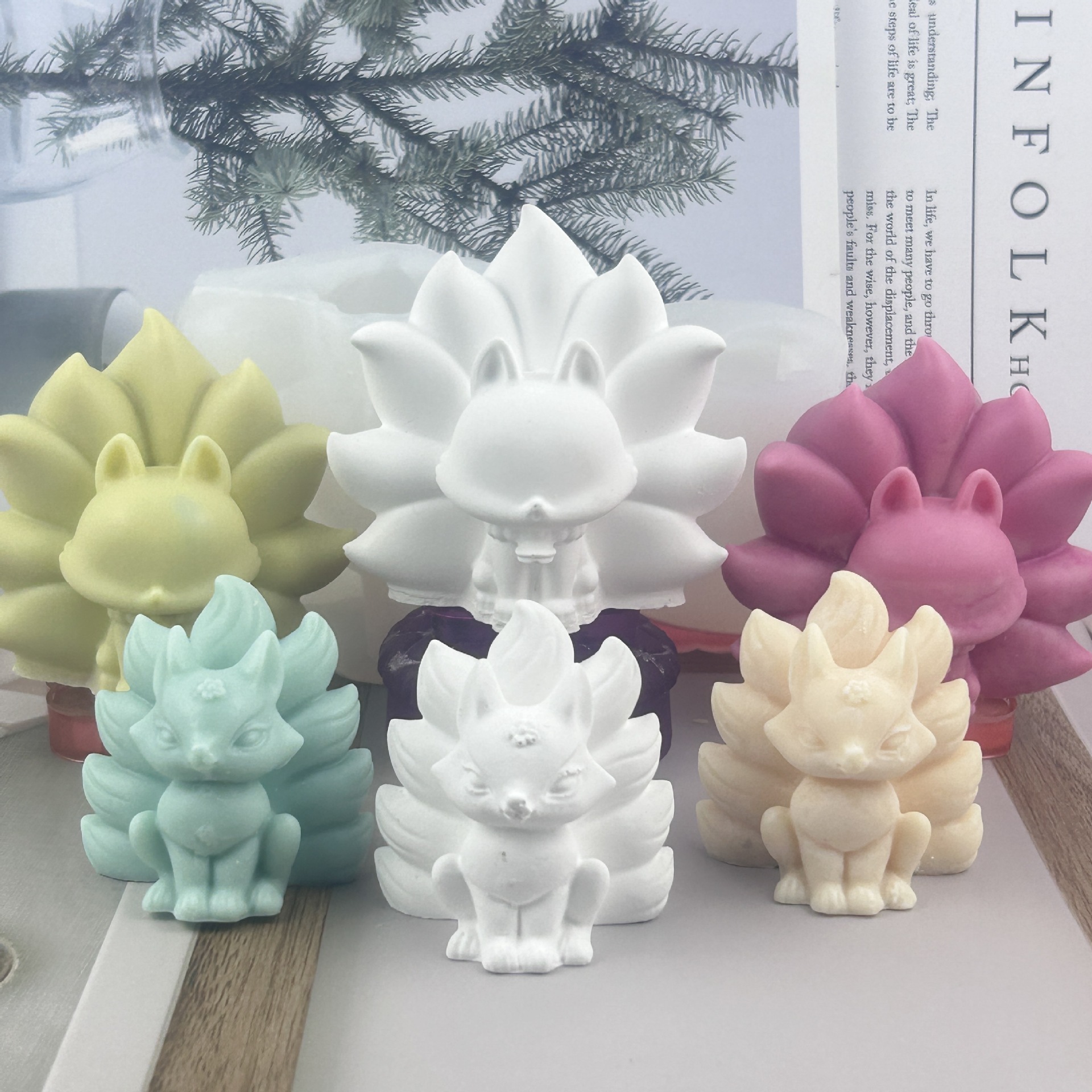 3 차원 9 꼬리 여우 크기 폭스 실리콘 몰드 DIY 9 꼬리 여우 아로마 테라피 양초 자동차 장식품 석고 몰드.스토어 가기