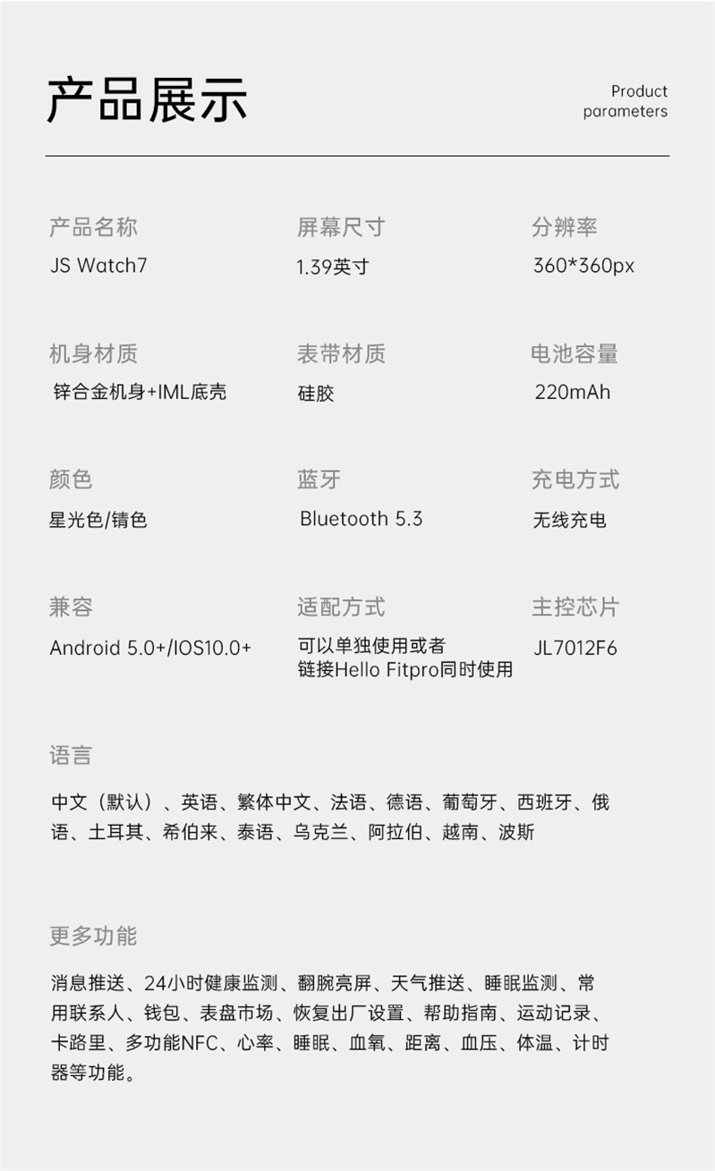 主控芯片 | JL7012F6 | 灭屏时间设置 | 3D动态表盘 | |