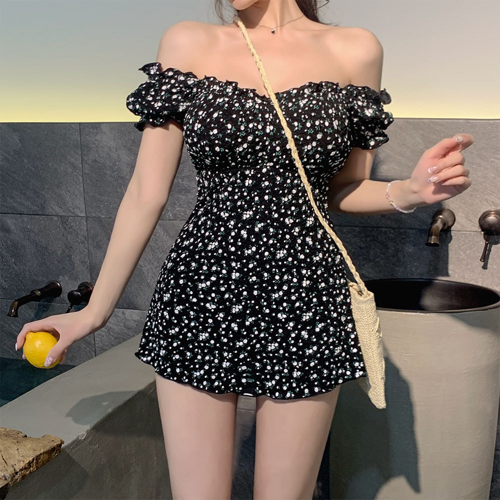 새로운 꽃 학생을 한국 스타일의 소스 공장 신선한 여성을위한 보수적 인 결합 온천 휴가 수영 세트