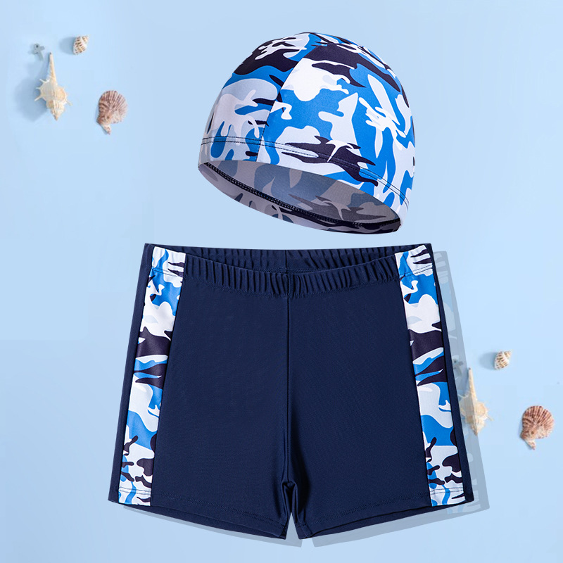 어린이 수영 트렁크 수영 모자 세트 도매 비치 바지 소년 5 점 바지 해변 휴가 온천 수영복 반바지
