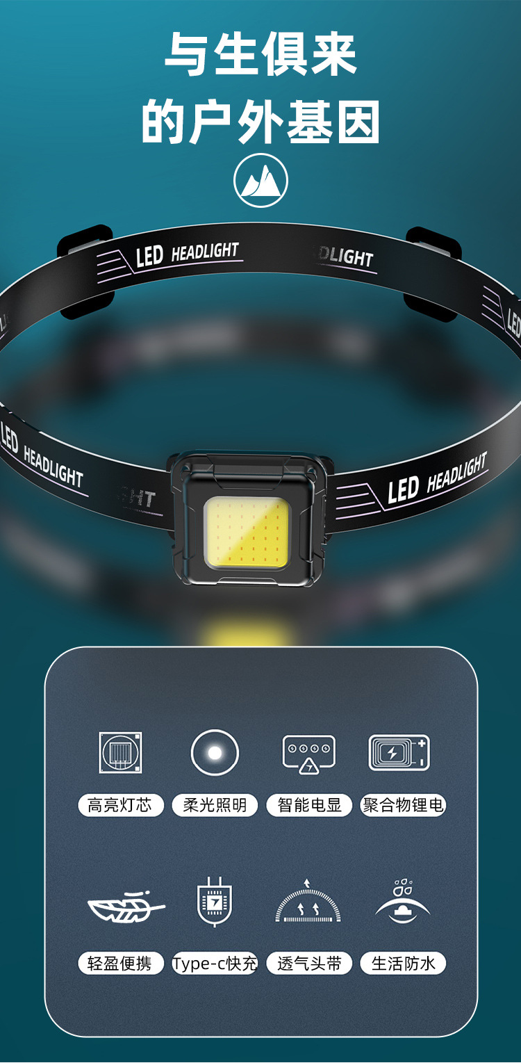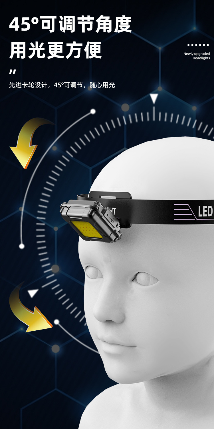 새로운 고휘도 야간 낚시 헤드램프, 강한 빛, 긴 배터리 수명, 충전식, 야외 하이킹, 헤드 장착형 낚시 램프, 사이클링 램프스토어 가기