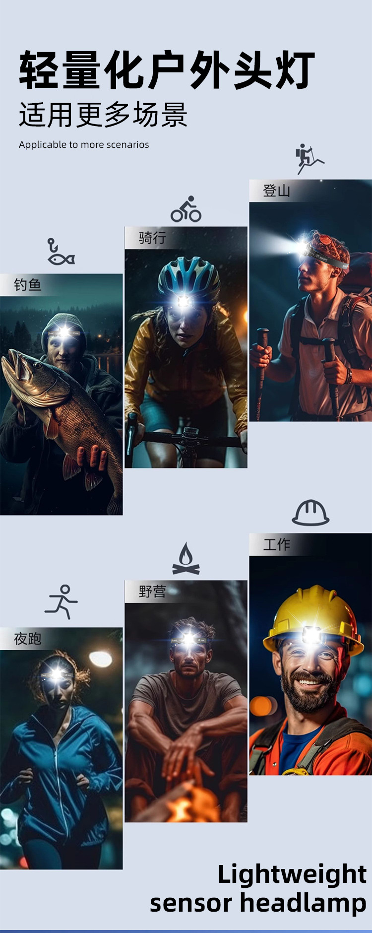 새로운 고휘도 야간 낚시 헤드램프, 강한 빛, 긴 배터리 수명, 충전식, 야외 하이킹, 헤드 장착형 낚시 램프, 사이클링 램프