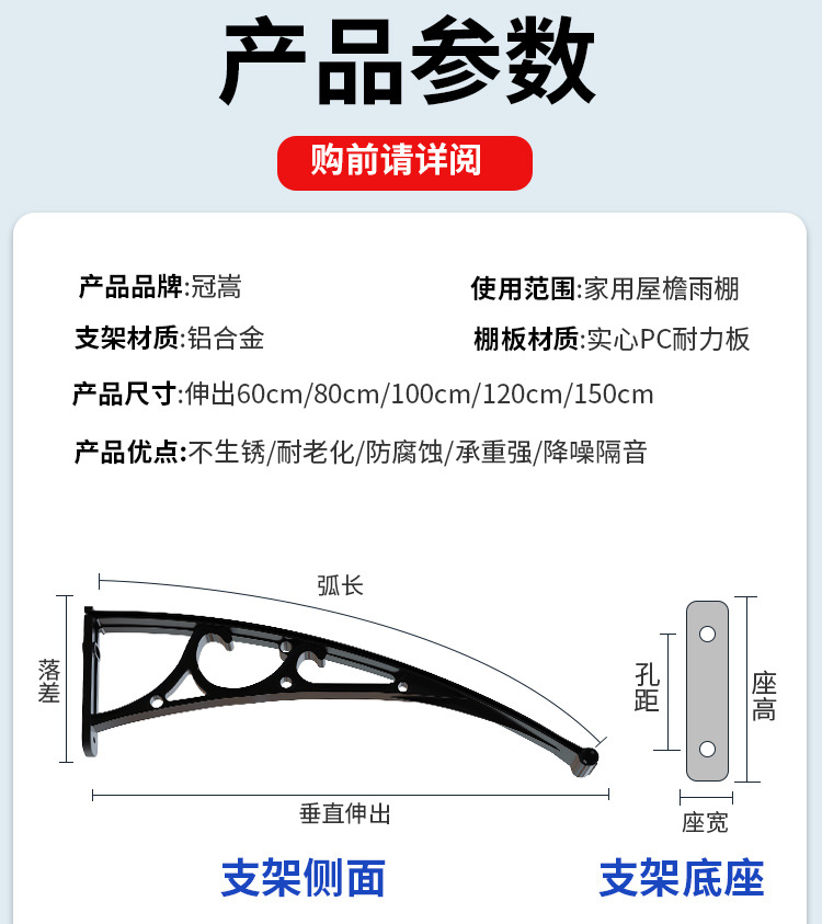 무료 배송 알루미늄 합금 야외 캐노피 창 외관 각성 안뜰 발코니 에어컨 방비 앞 유리 캐노피스토어 가기