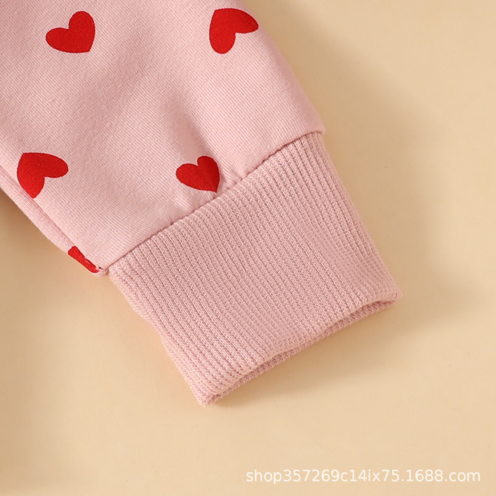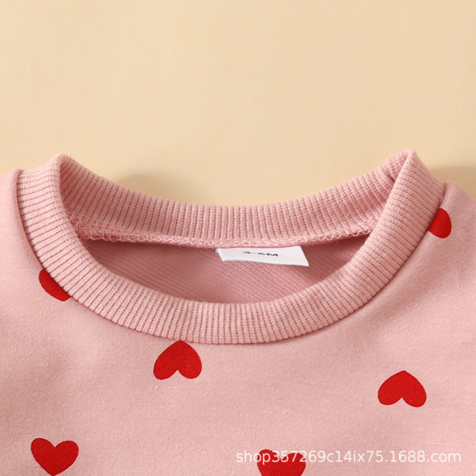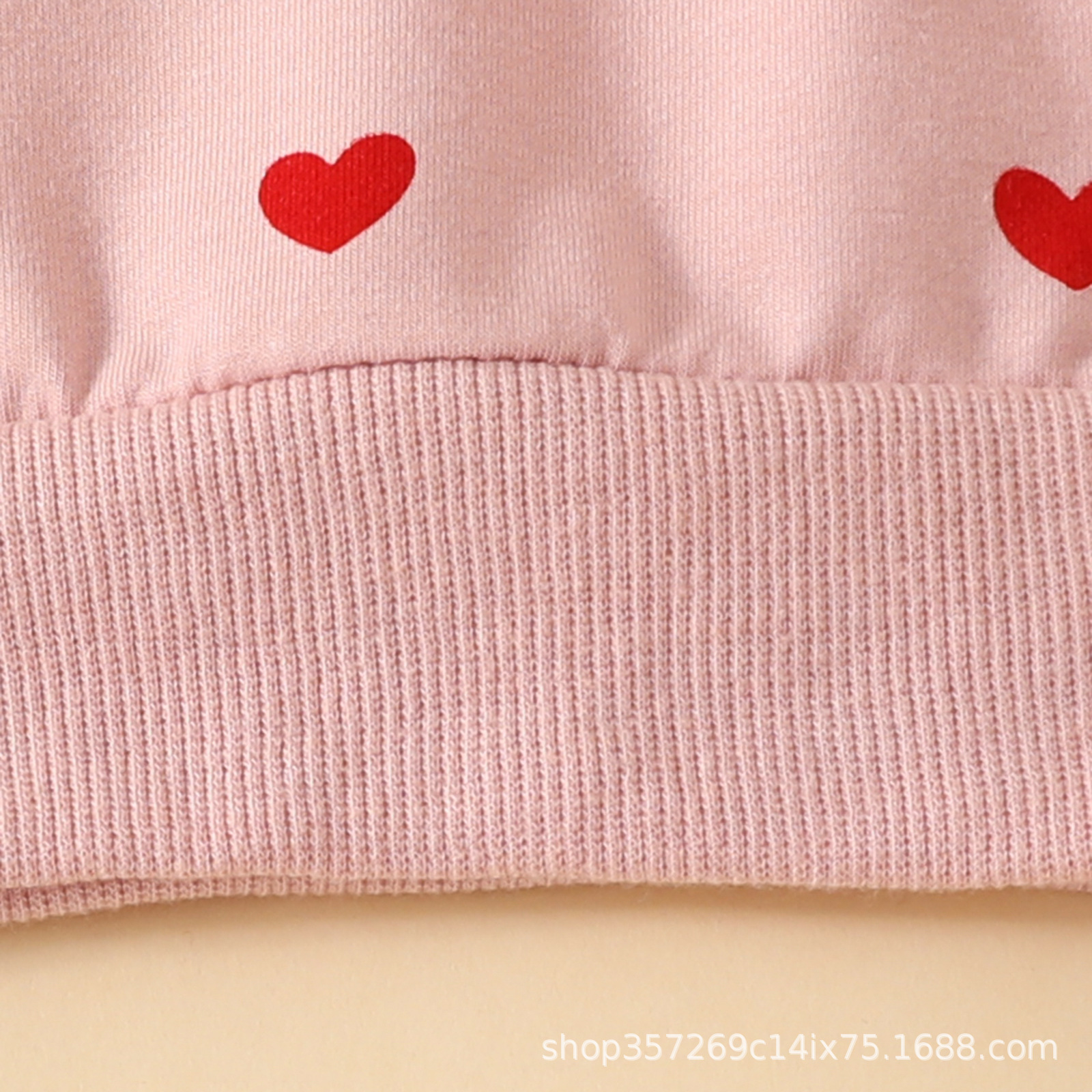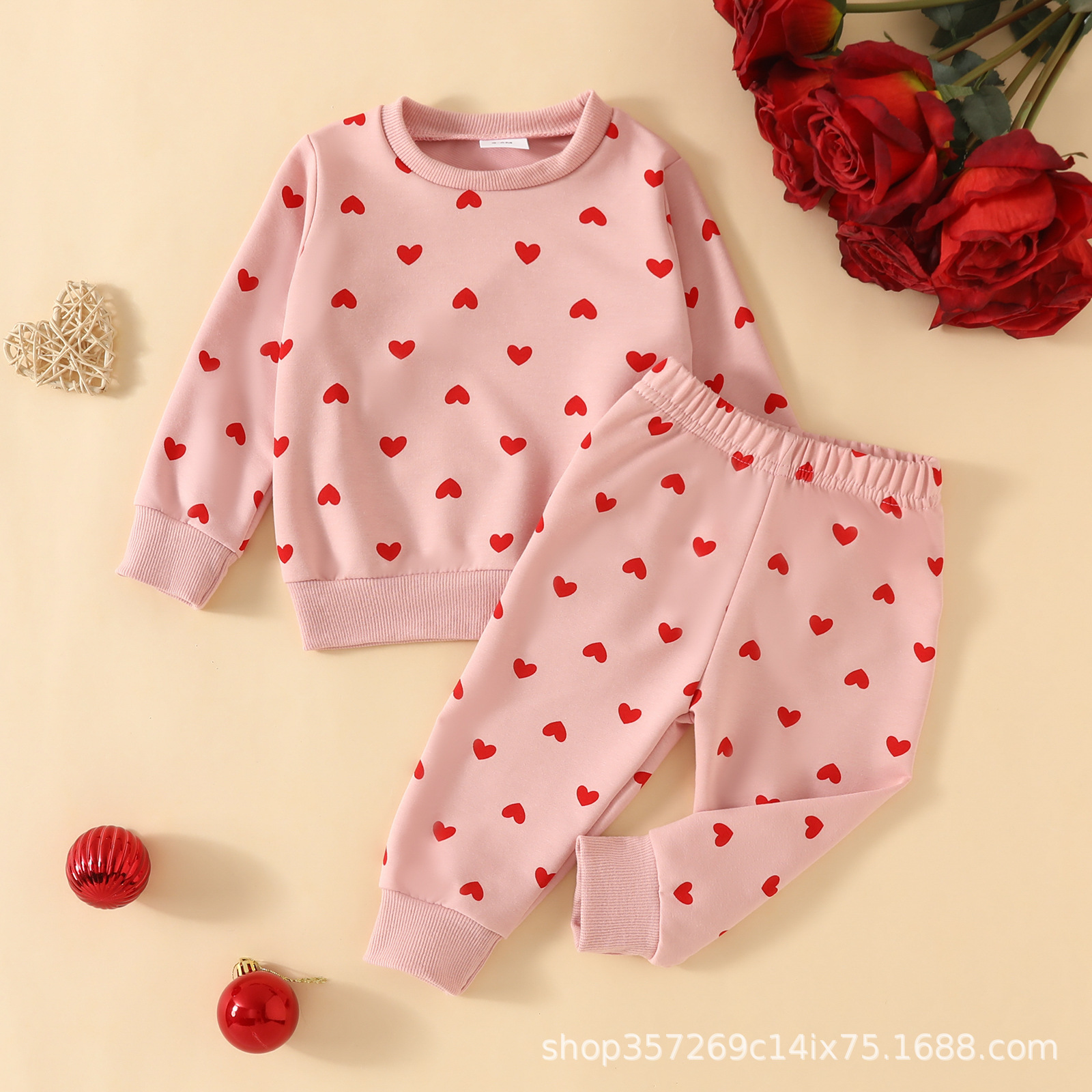 남자와 여자의 유럽과 미국 인쇄 풀오버 아마존 발렌타인 데이 어린이 대외 무역 긴 소매 바지 패션 투피스 세트