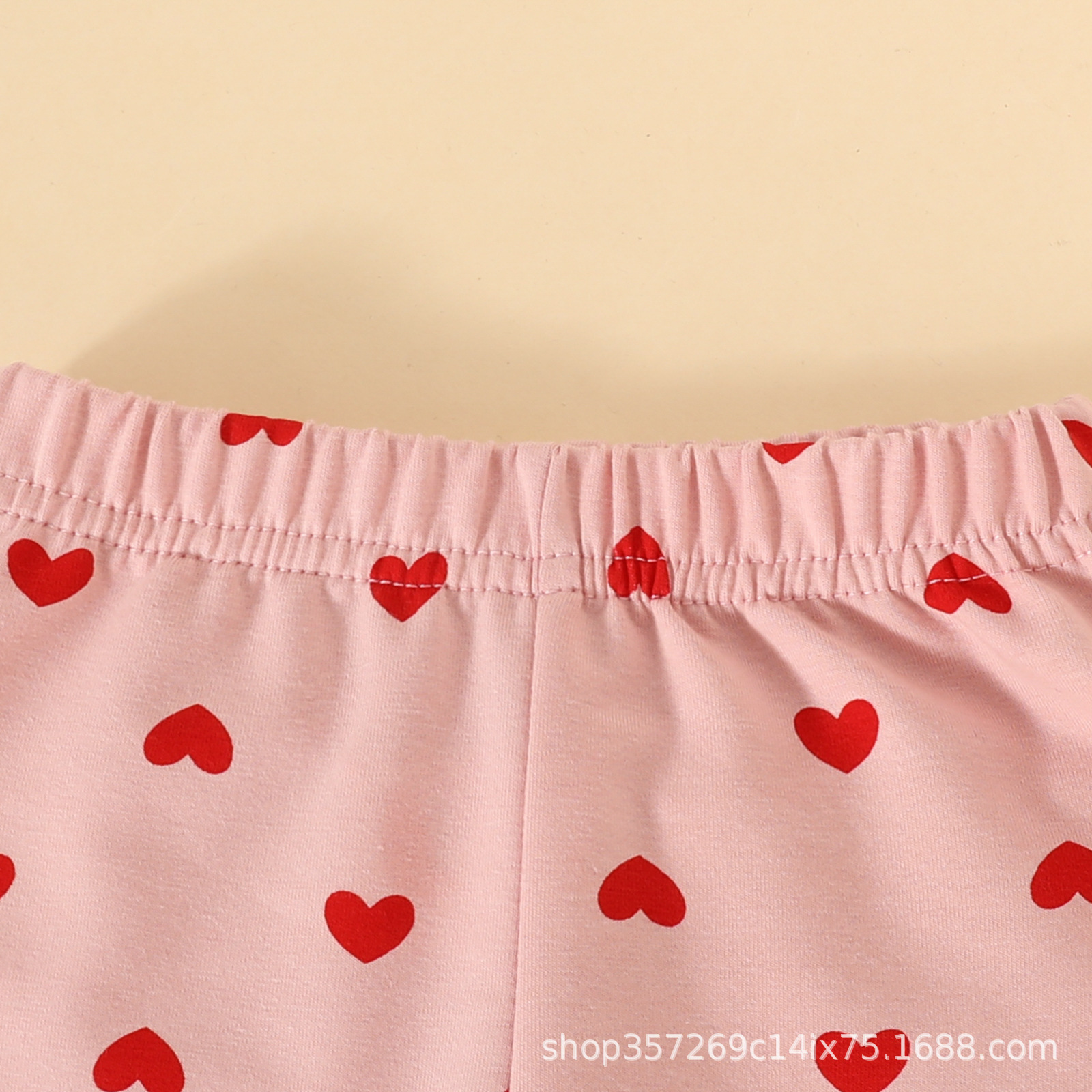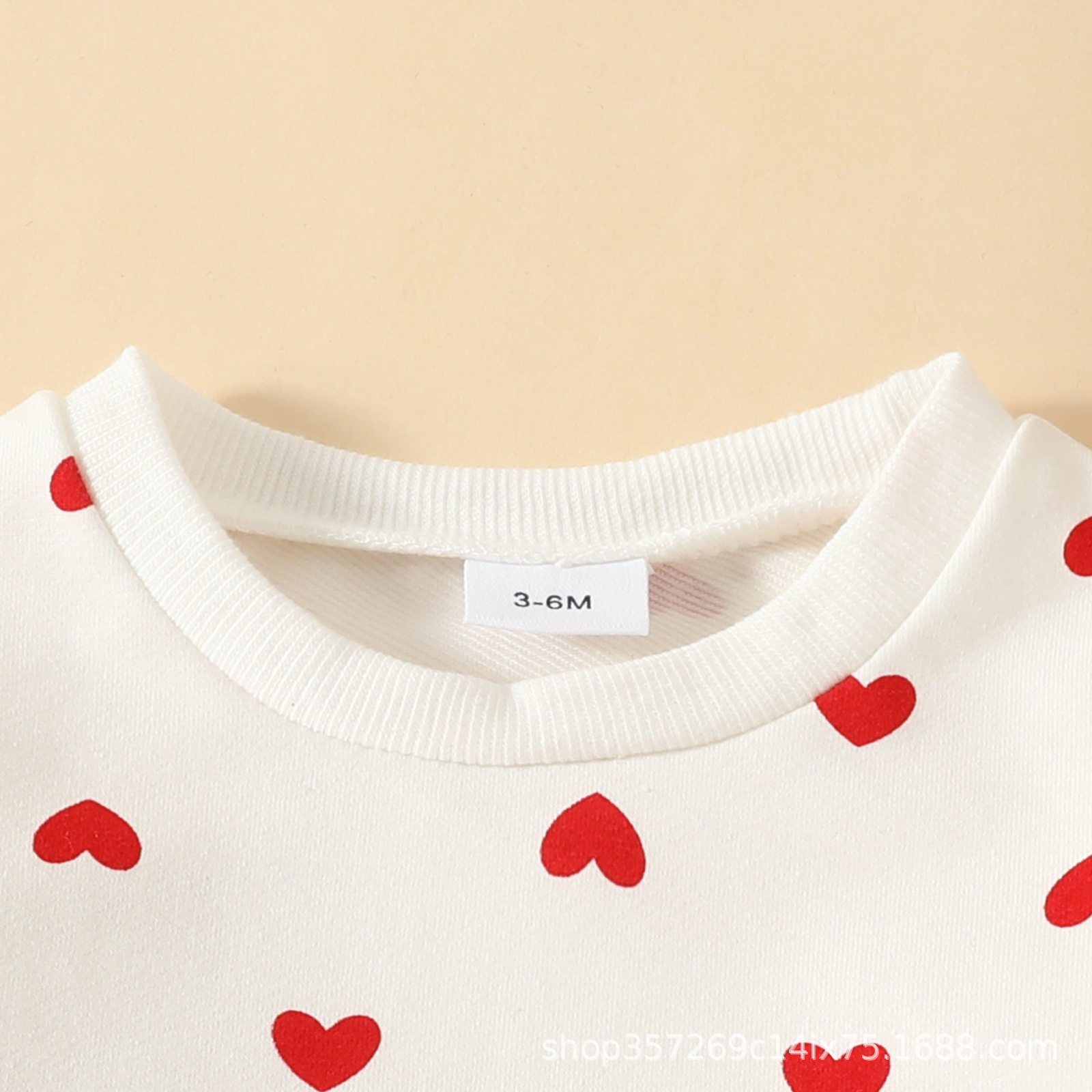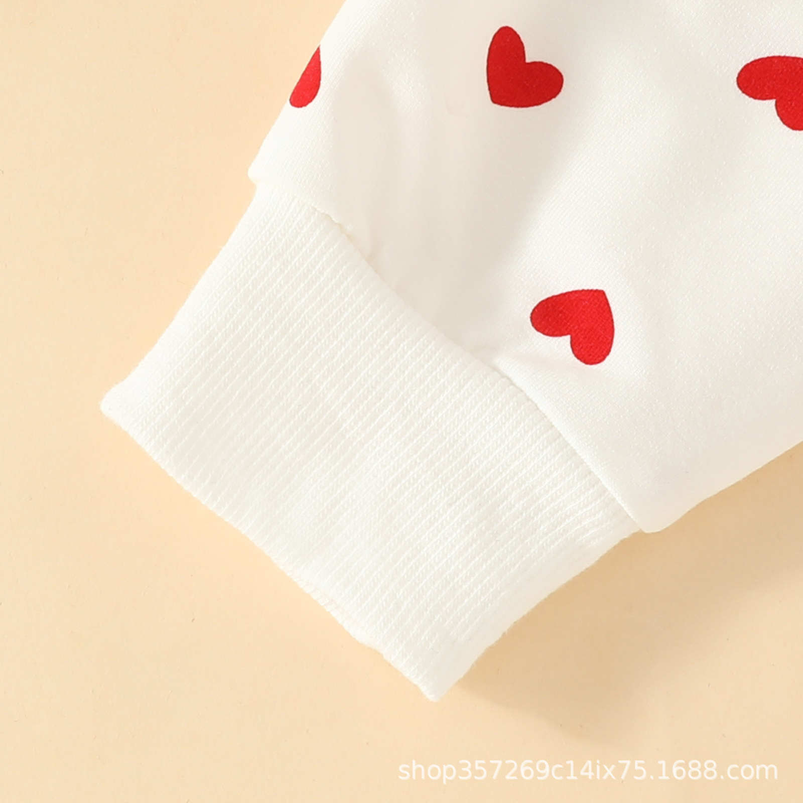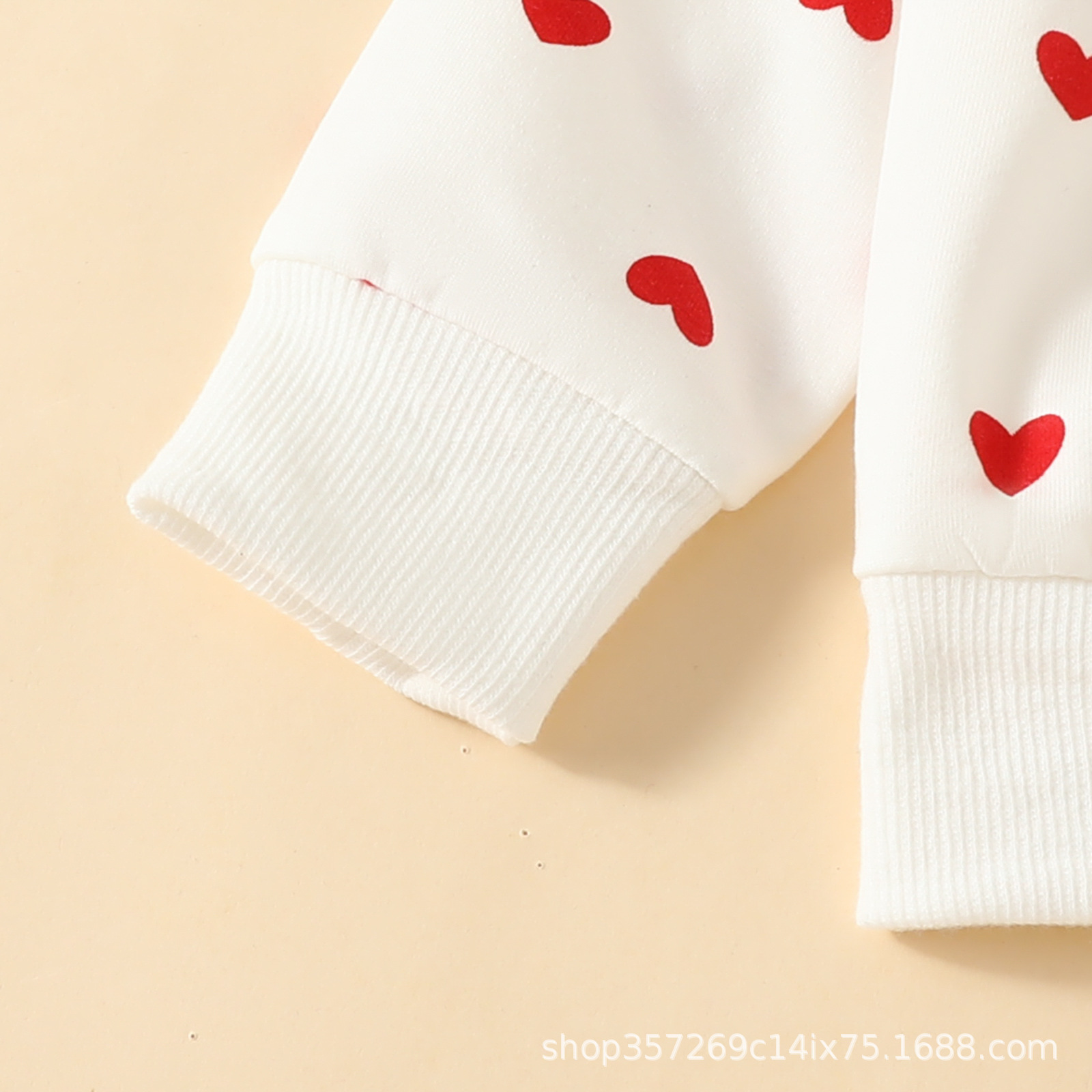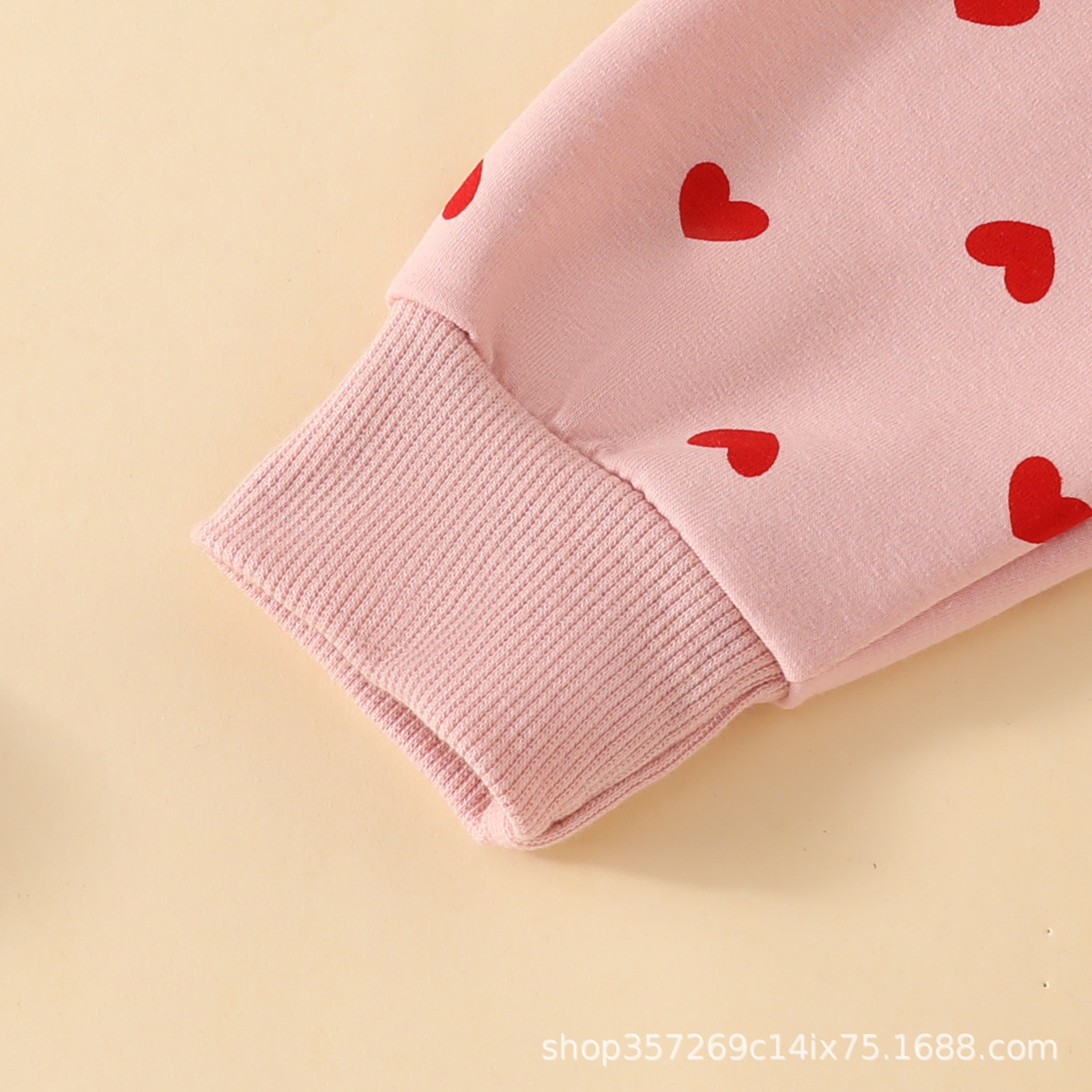 남자와 여자의 유럽과 미국 인쇄 풀오버 아마존 발렌타인 데이 어린이 대외 무역 긴 소매 바지 패션 투피스 세트