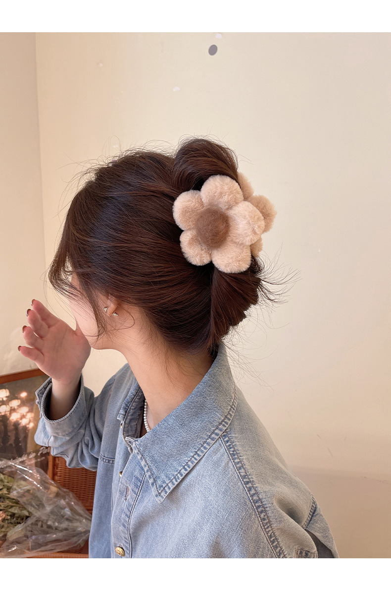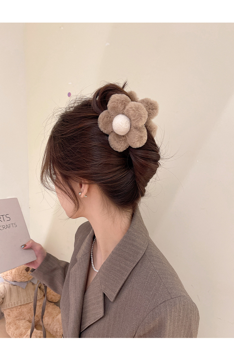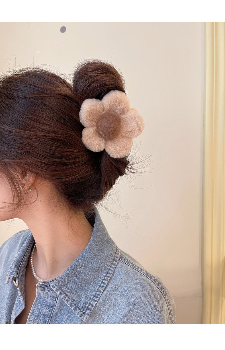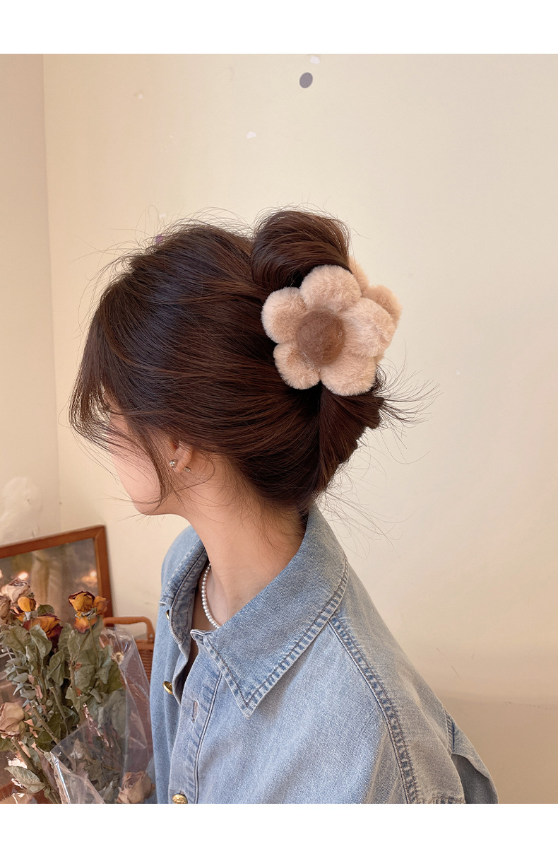 가을과 겨울 maillard 꽃 봉제 머리핀 뒤 머리 상어 클립 2023 새로운 귀여운 우아한 그랩 헤어 액세서리스토어 가기
