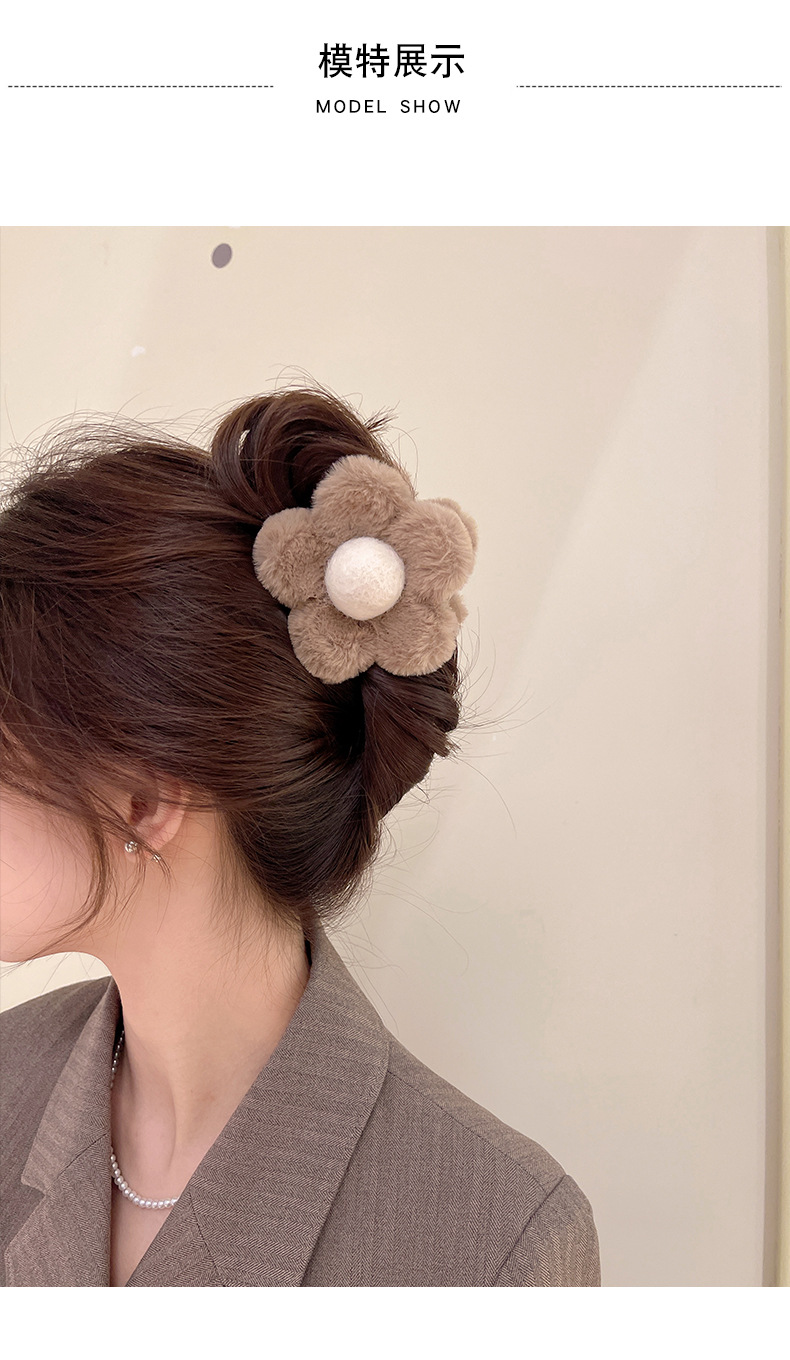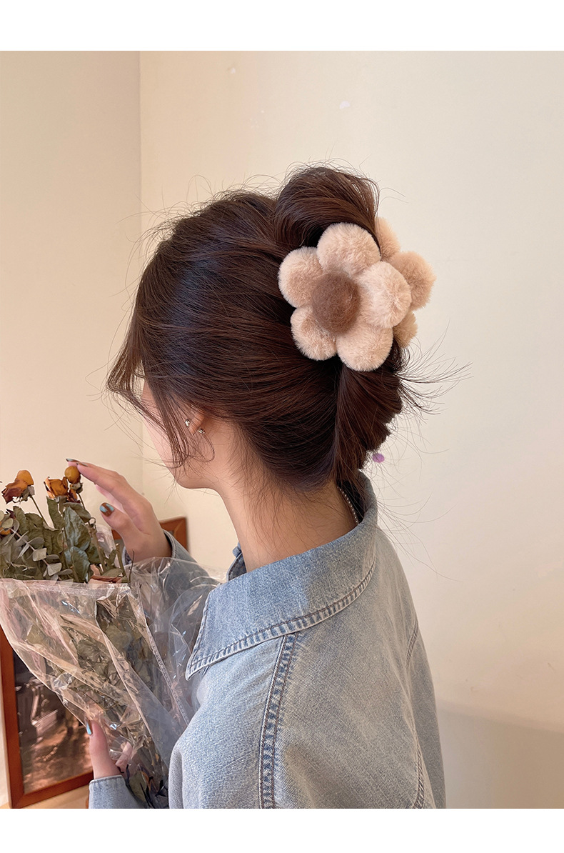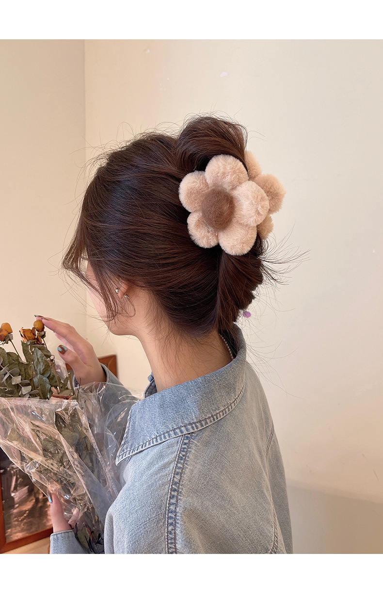 가을과 겨울 maillard 꽃 봉제 머리핀 뒤 머리 상어 클립 2023 새로운 귀여운 우아한 그랩 헤어 액세서리스토어 가기