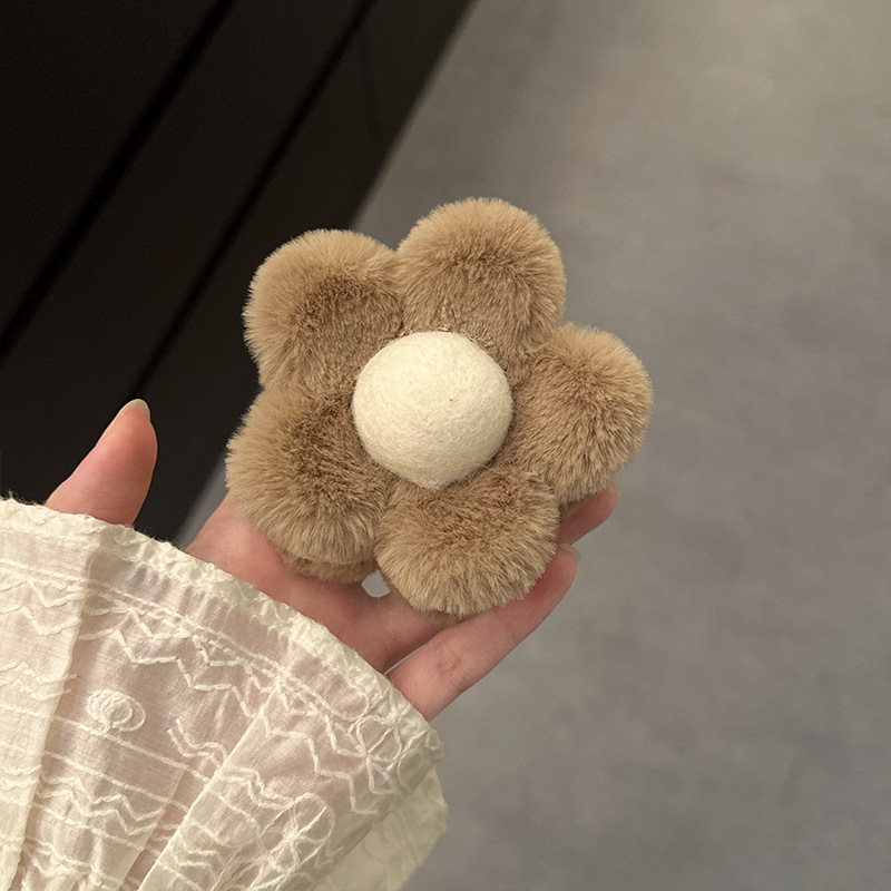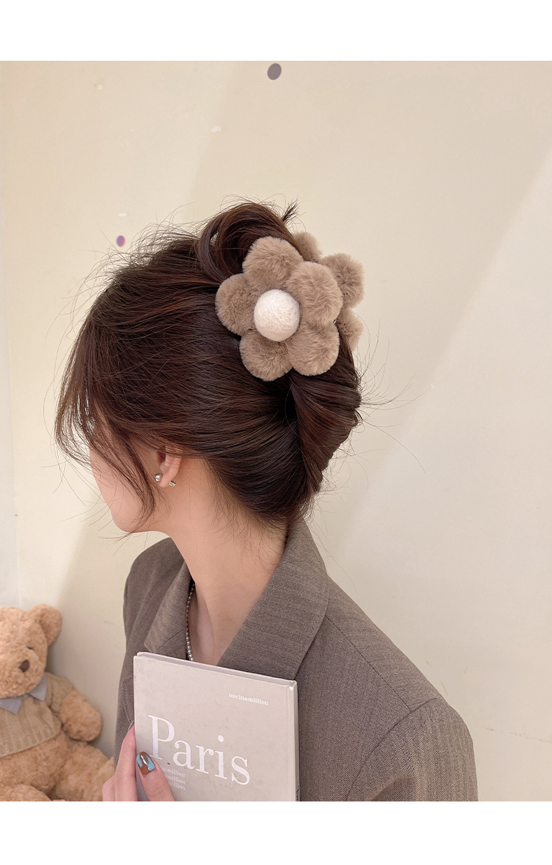 가을과 겨울 maillard 꽃 봉제 머리핀 뒤 머리 상어 클립 2023 새로운 귀여운 우아한 그랩 헤어 액세서리