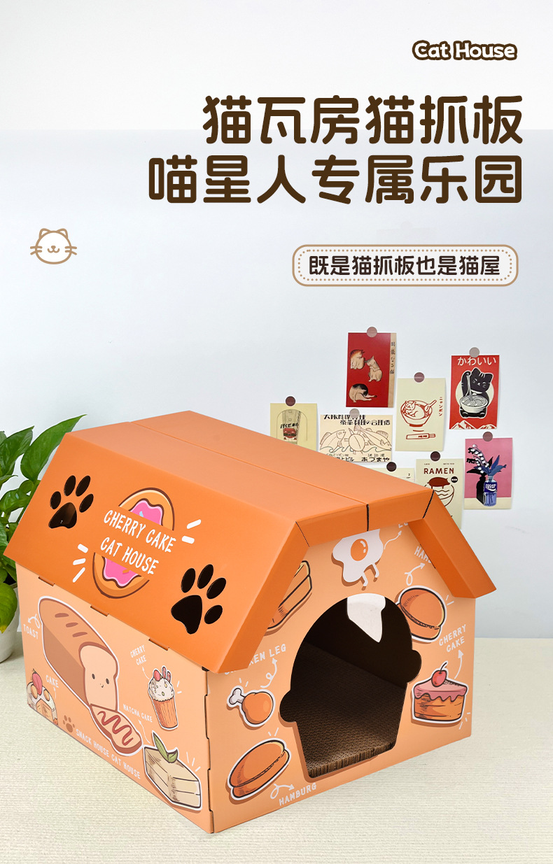 엄선된 고양이 집, 고양이 스크래쳐, 사계절용 고양이 집, 애완 고양이 골판지 고양이 집, 빌라형 대형 공간 고양이 집 도매스토어 가기