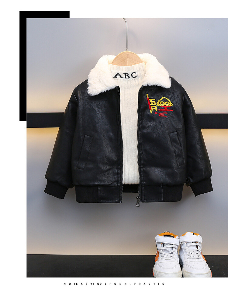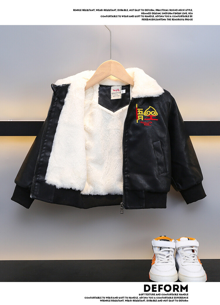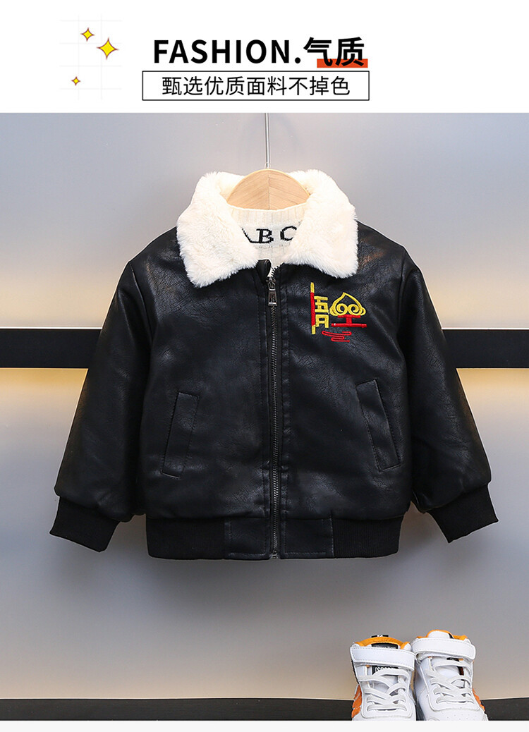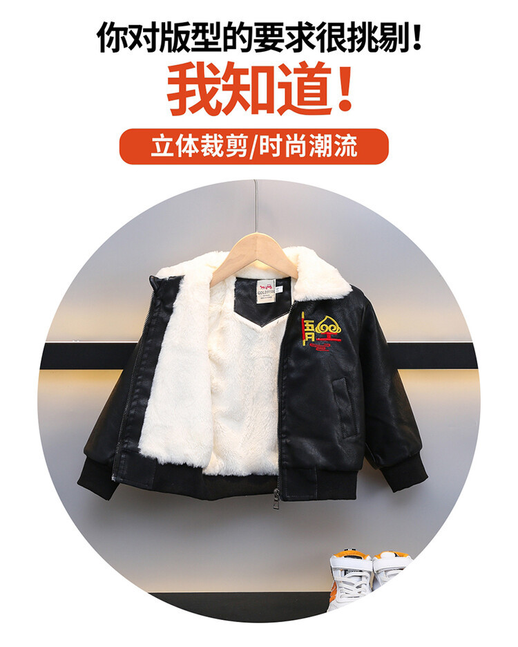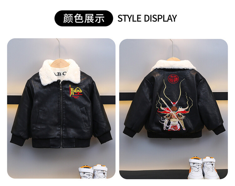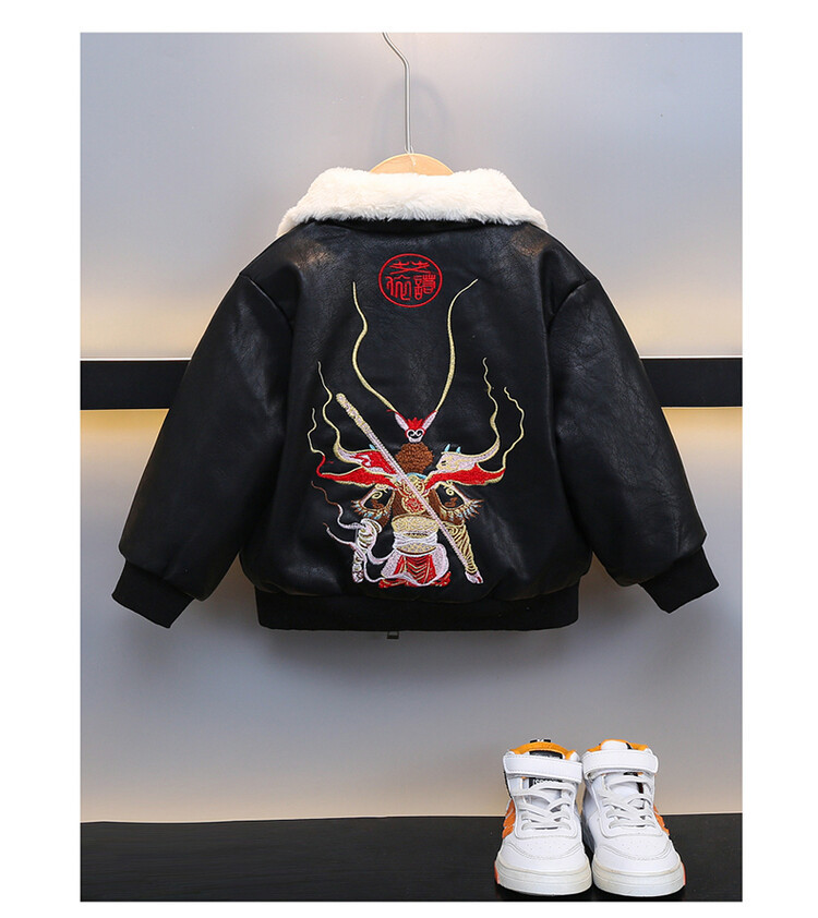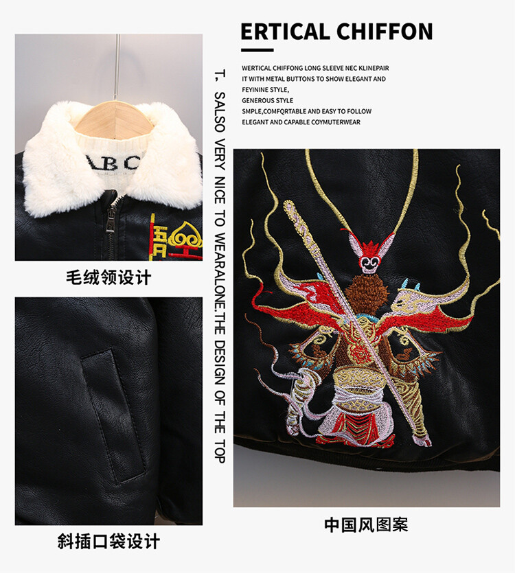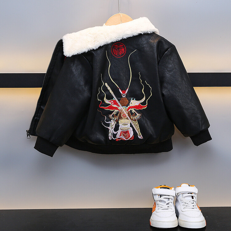 소년 '기모 Wukong 가죽 자켓 가을과 겨울 어린이 두꺼운 잘 생긴 재킷 중소 규모 어린이 튀김 스트리트 재킷 도매스토어 가기