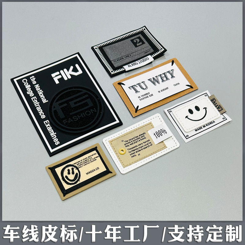 카 라인 레더 라벨 10 년 공장 푸 레더 콤비네이션 로고 레더 배지 가방 패치 라벨 의류 장식 라벨 레더 브랜드스토어 가기