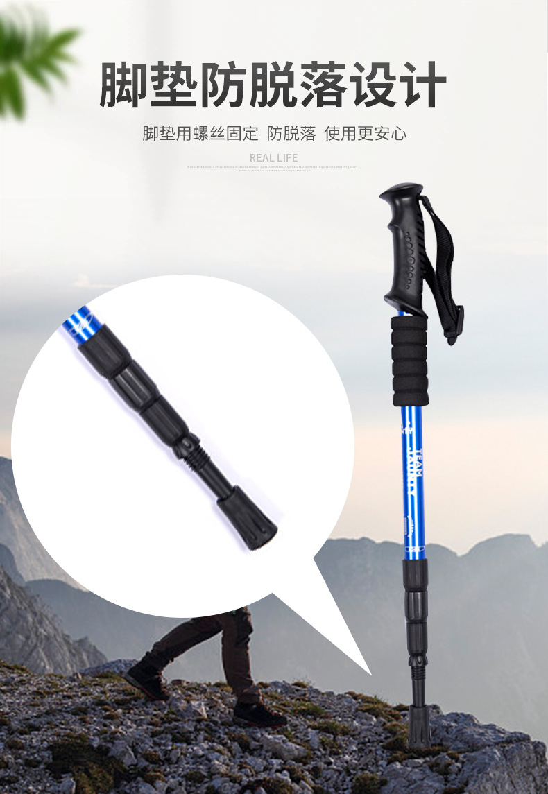 야외 스포츠 제품 등반 스틱 스트레이트 핸들 알루미늄 합금 텔레스코픽 목발 미끄럼 방지 하이킹 크로스 컨트리 워킹 스틱 워킹 에이드