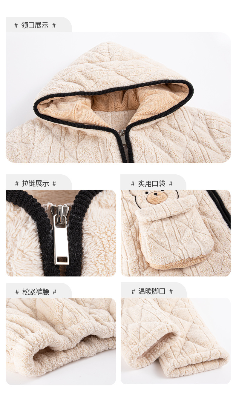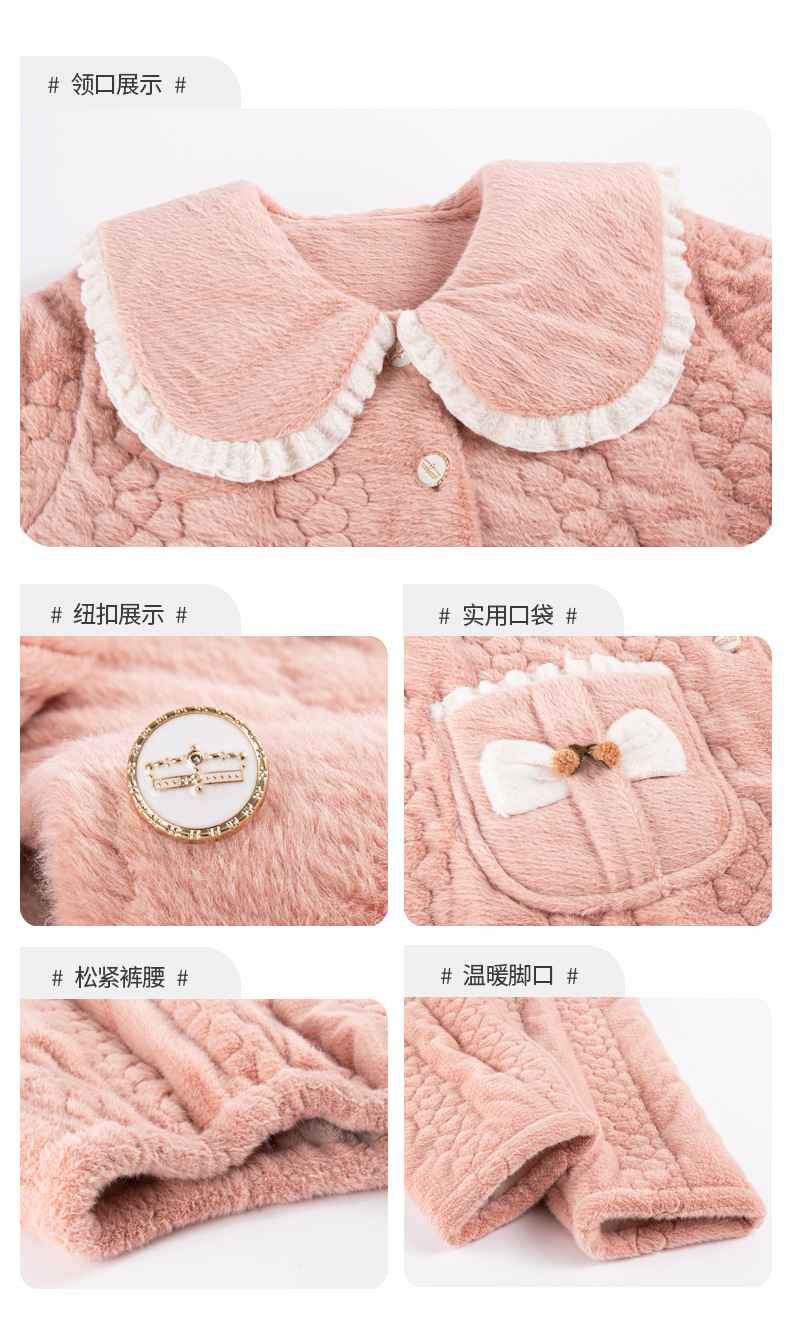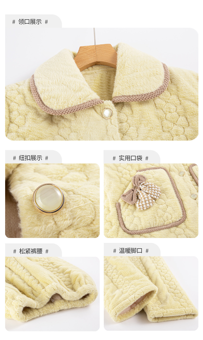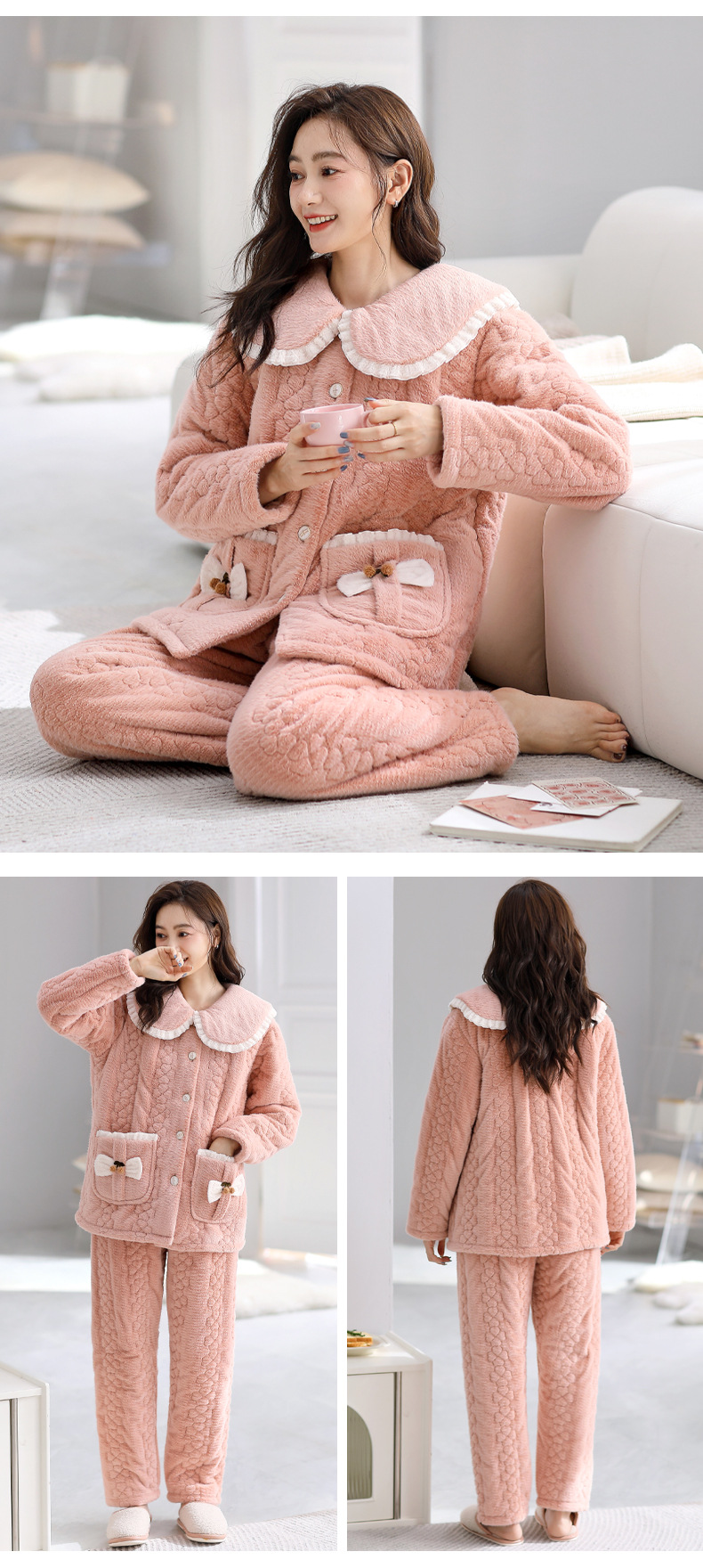 3 층 퀼트 및 벨벳 잠옷 여자의 겨울 산호 벨벳 두꺼운 아웃웨어 가정 의류 겨울 면 패딩 재킷 따뜻한 세트