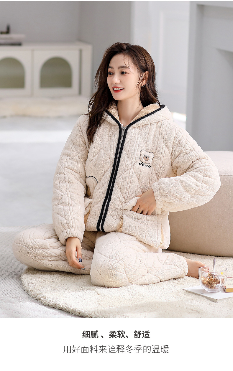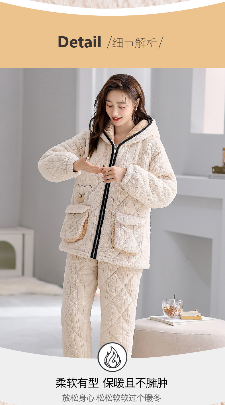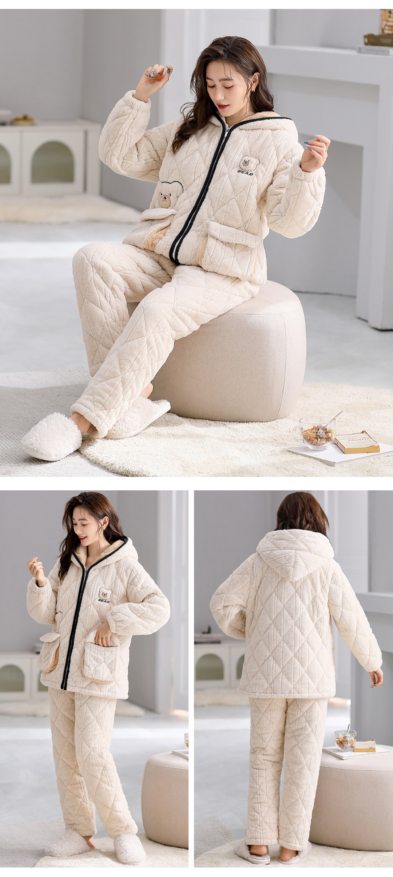 3 층 퀼트 및 벨벳 잠옷 여자의 겨울 산호 벨벳 두꺼운 아웃웨어 가정 의류 겨울 면 패딩 재킷 따뜻한 세트스토어 가기