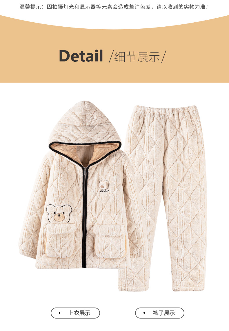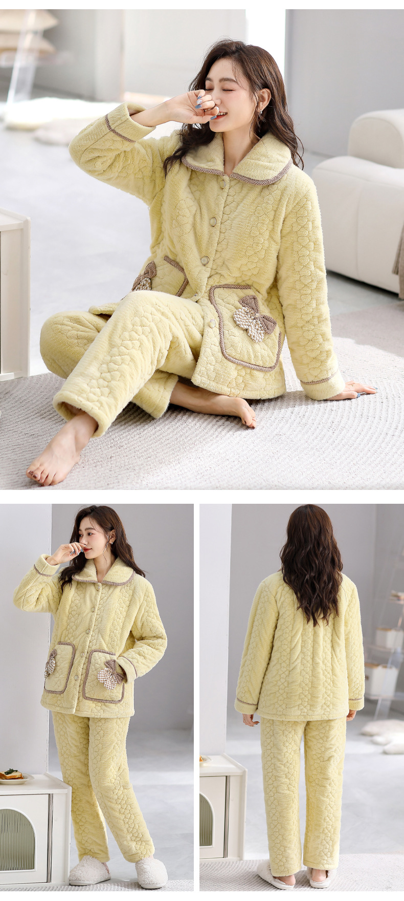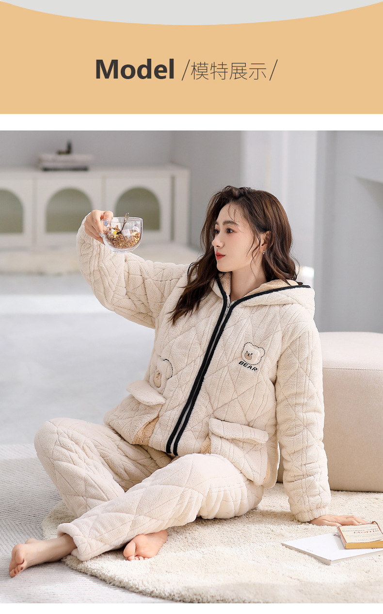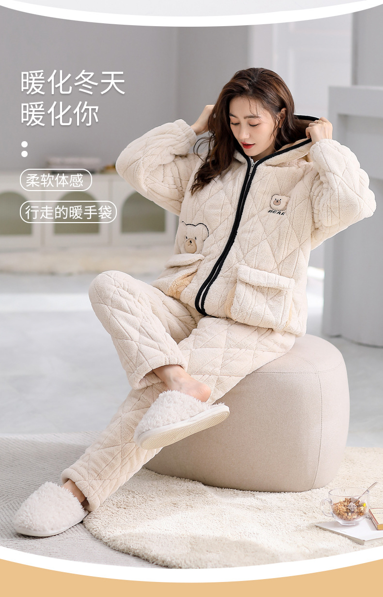 3 층 퀼트 및 벨벳 잠옷 여자의 겨울 산호 벨벳 두꺼운 아웃웨어 가정 의류 겨울 면 패딩 재킷 따뜻한 세트스토어 가기