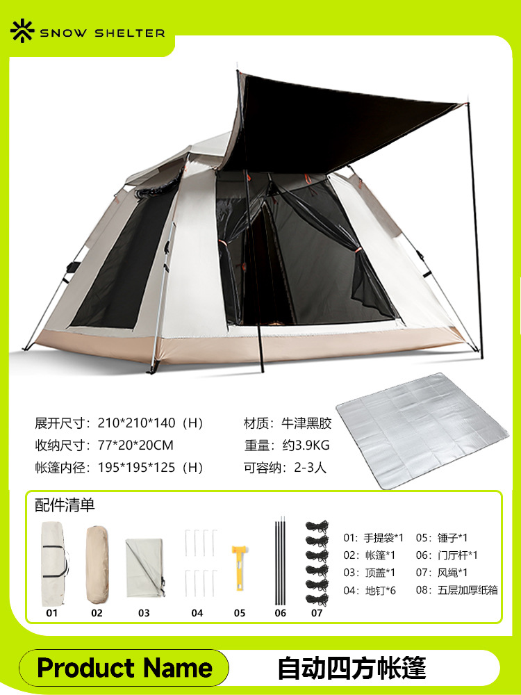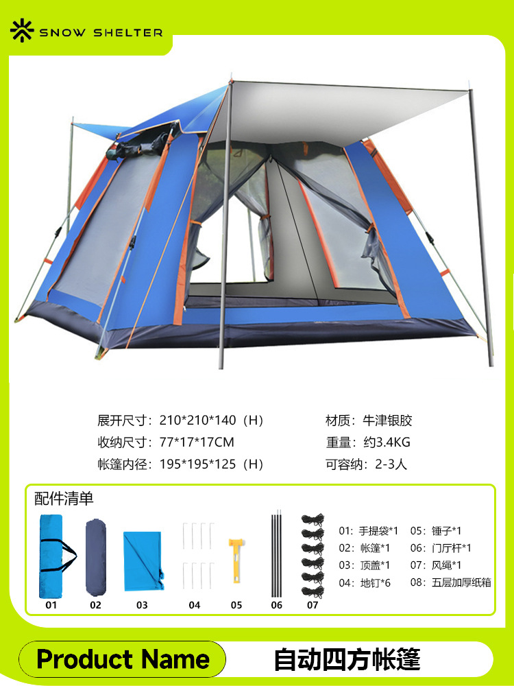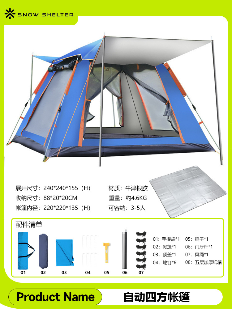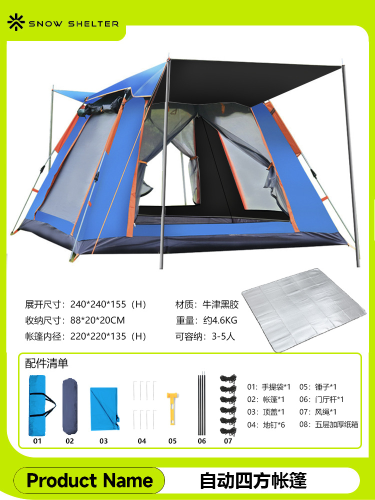 야외 텐트 완전 자동 3-4 인 비치 퀵 오픈 접이식 텐트 캠핑 이중 방수 캠핑 공장 도매