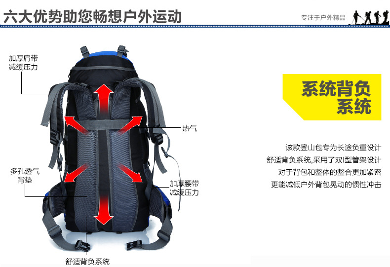 공장 스트레이트 헤어 크로스 보더 새로운 백팩 야외 등산 대용량 65L + 5L 등산 및 하이킹 스포츠 백팩스토어 가기