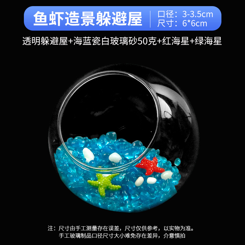 • 회피 하우스 + 도자기 화이트 아이스 블루 유리 모래 50g + 레드 불가사리 + 그린 불가사리