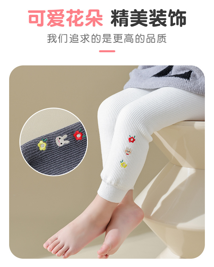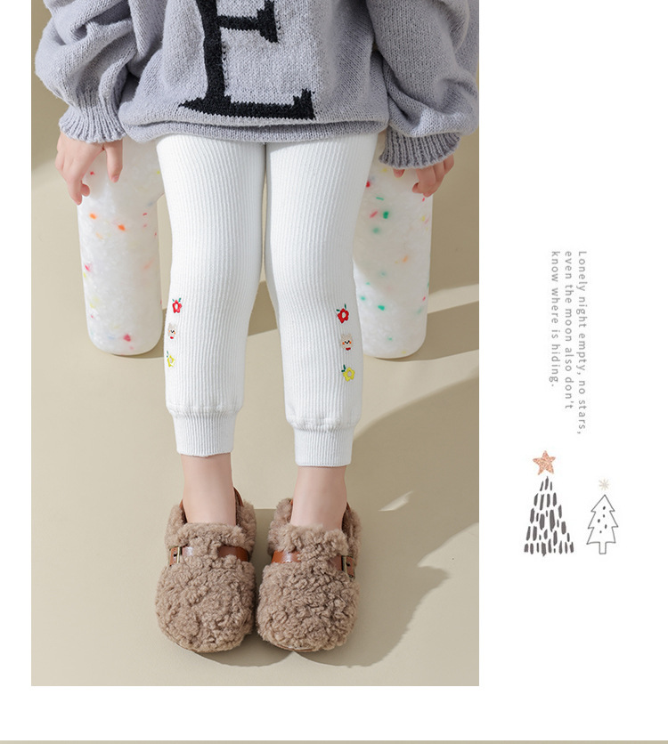 어린 소녀의 유치원 아기의 큰 곰 만화 자수 두꺼운 양고기 벨벳 자른 레깅스 가을과 겨울