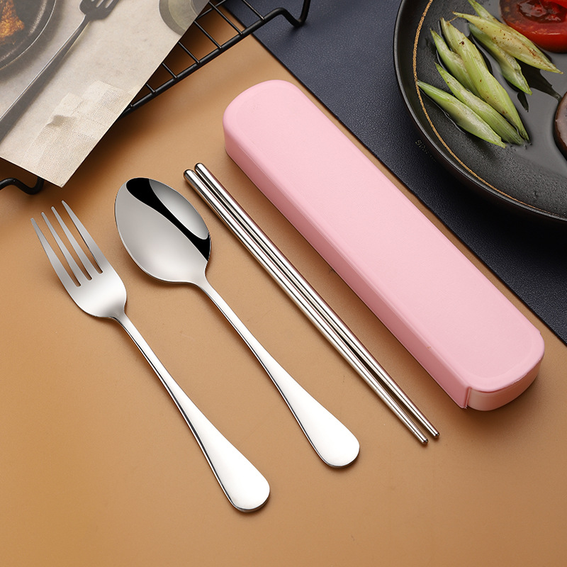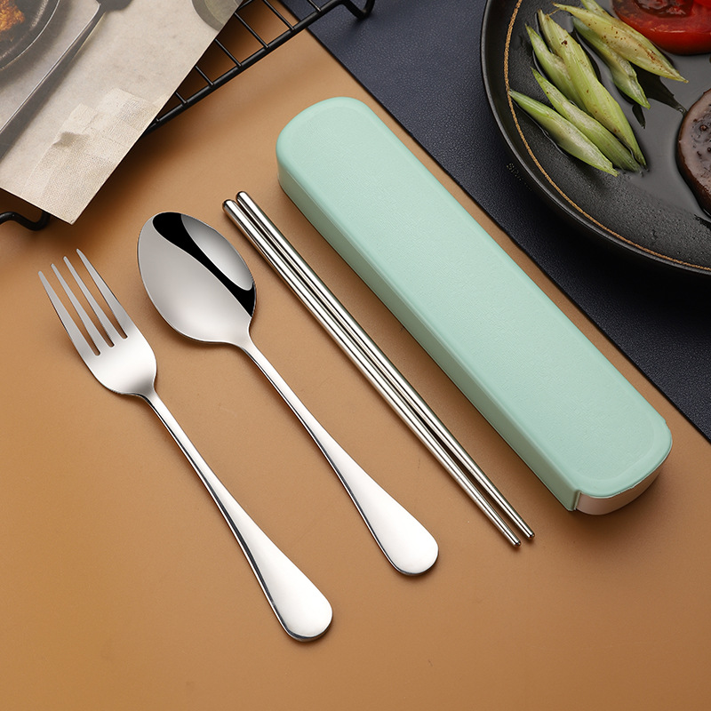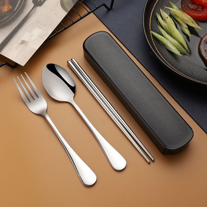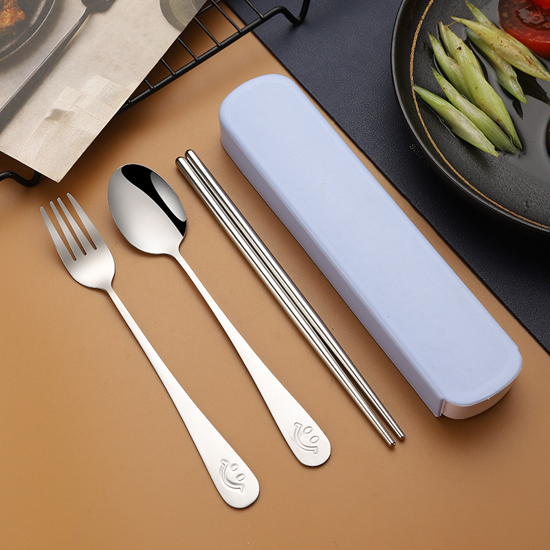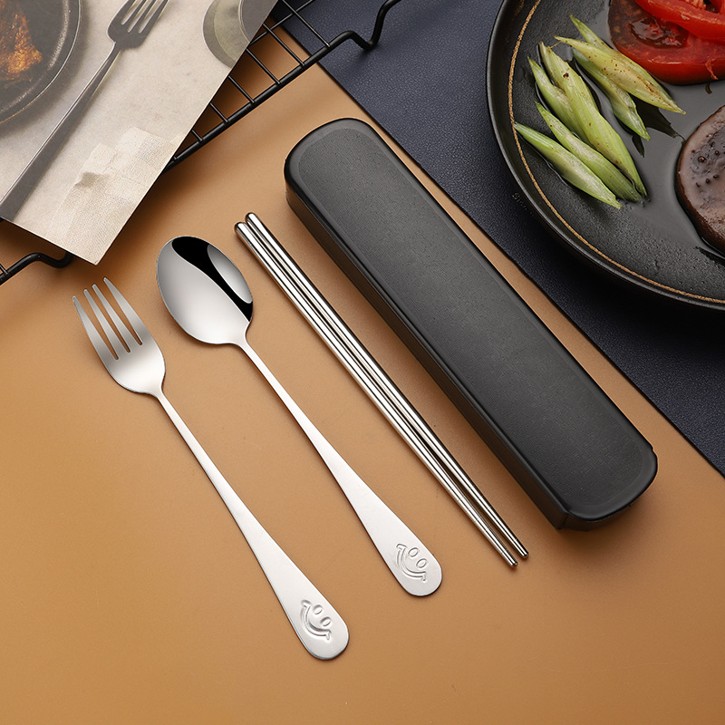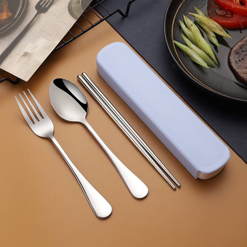 스테인레스 스틸 휴대용 식기 3 피스 야외 학생 젓가락 숟가락 포크 세트 판촉 선물 보관함스토어 가기