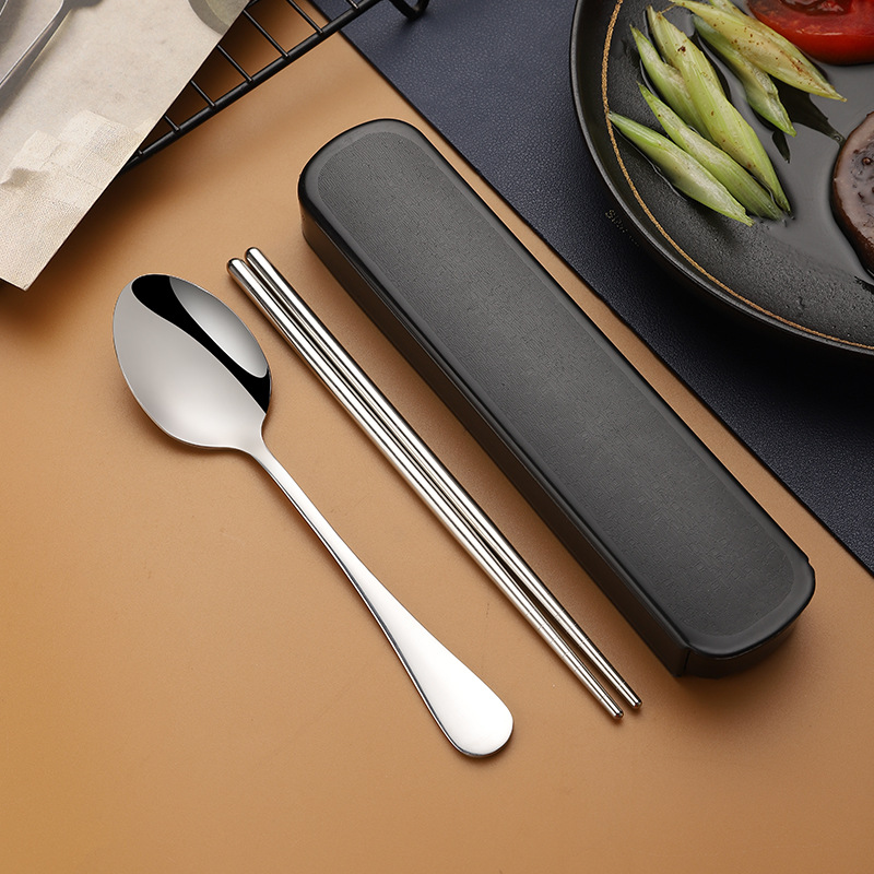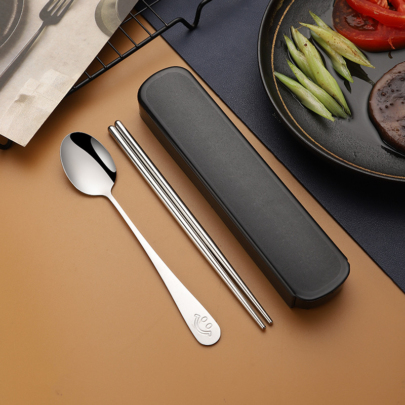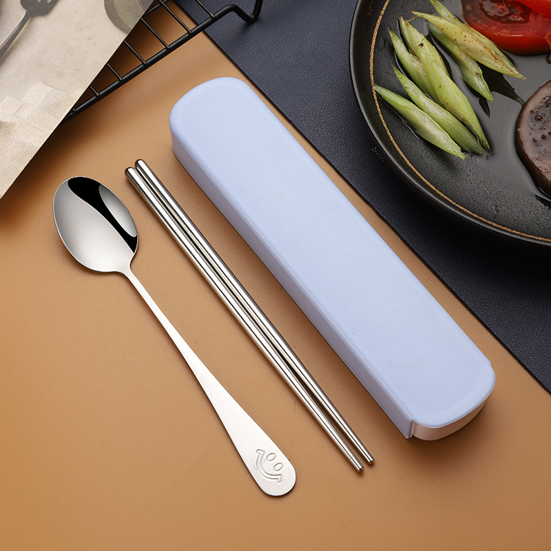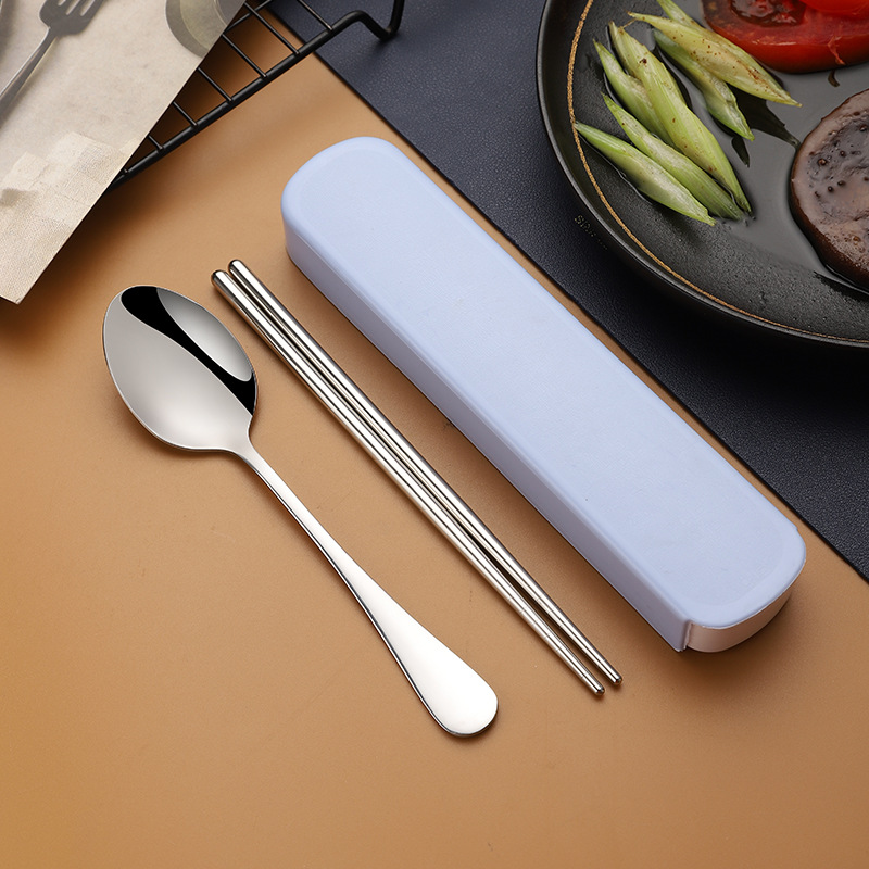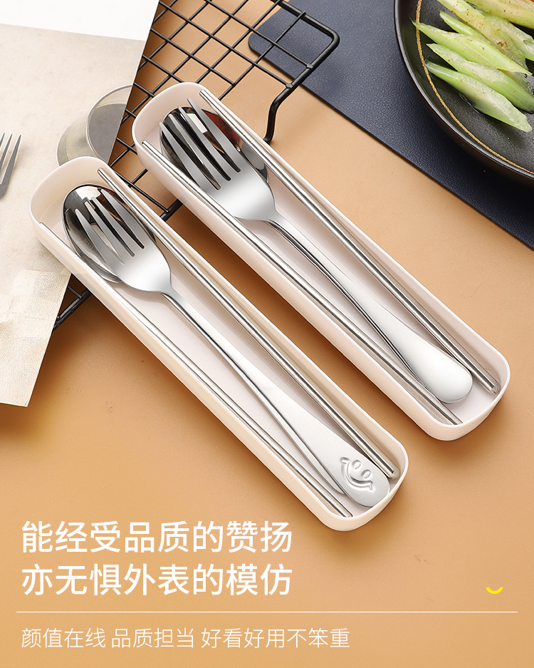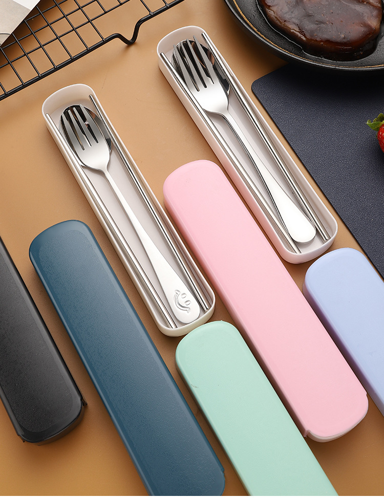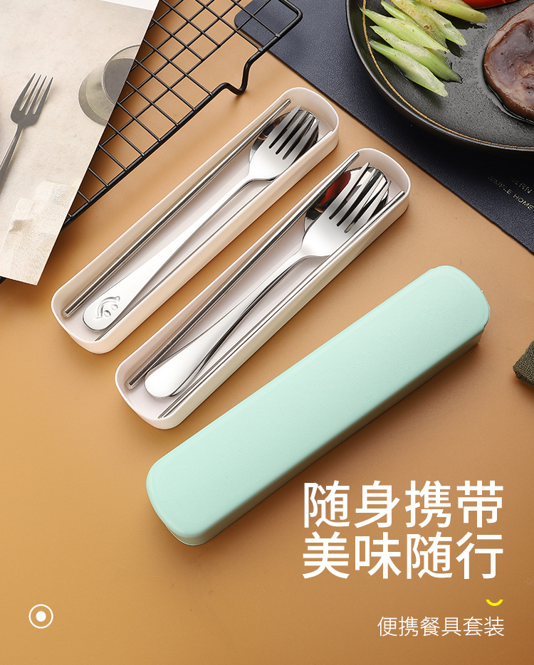 스테인레스 스틸 휴대용 식기 3 피스 야외 학생 젓가락 숟가락 포크 세트 판촉 선물 보관함스토어 가기
