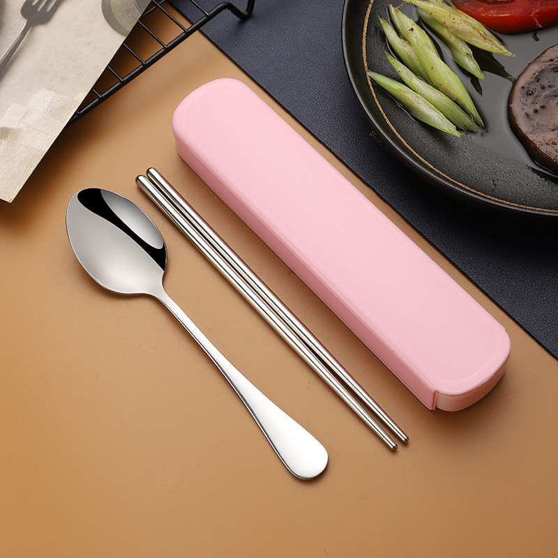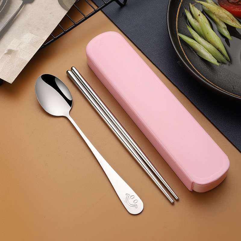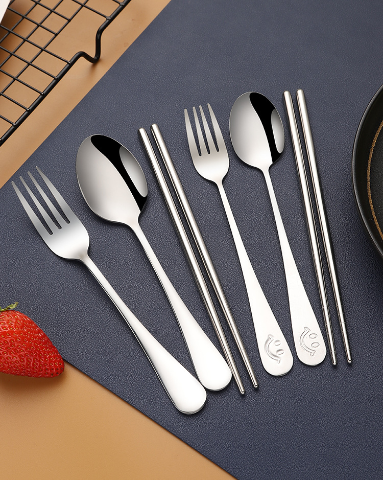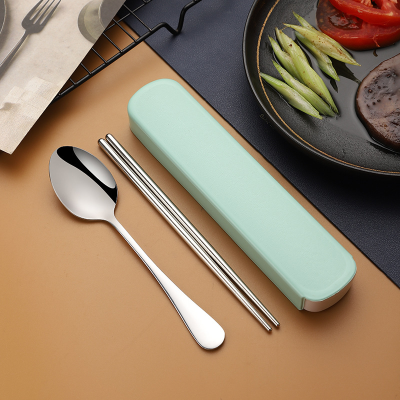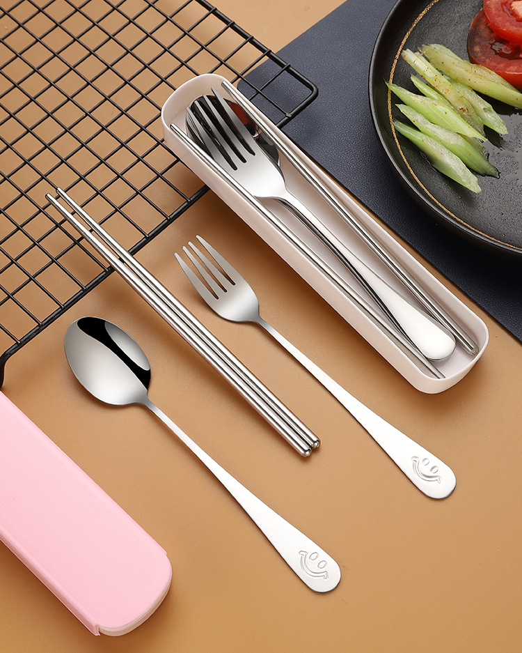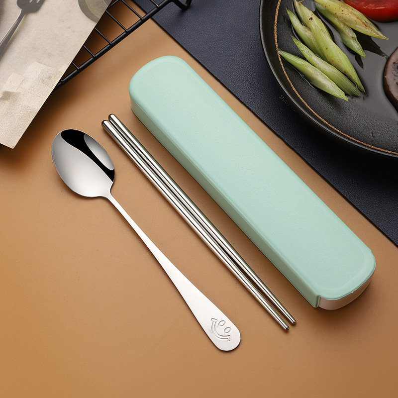 스테인레스 스틸 휴대용 식기 3 피스 야외 학생 젓가락 숟가락 포크 세트 판촉 선물 보관함스토어 가기
