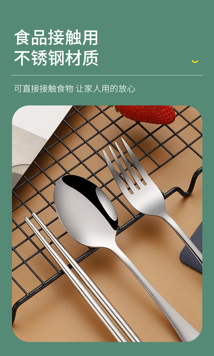 스테인레스 스틸 휴대용 식기 3 피스 야외 학생 젓가락 숟가락 포크 세트 판촉 선물 보관함