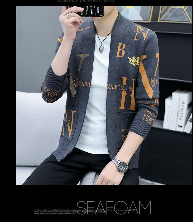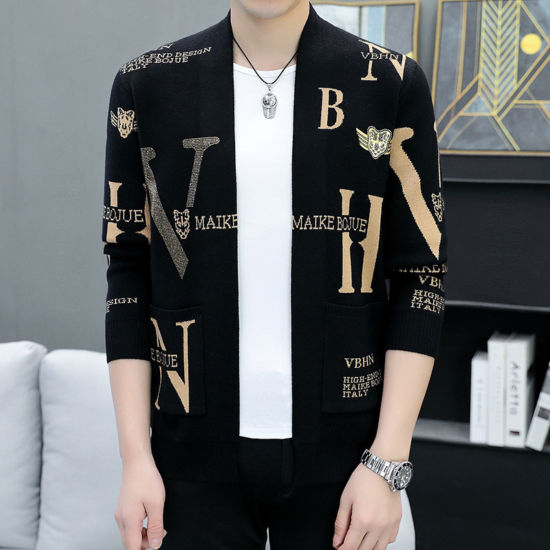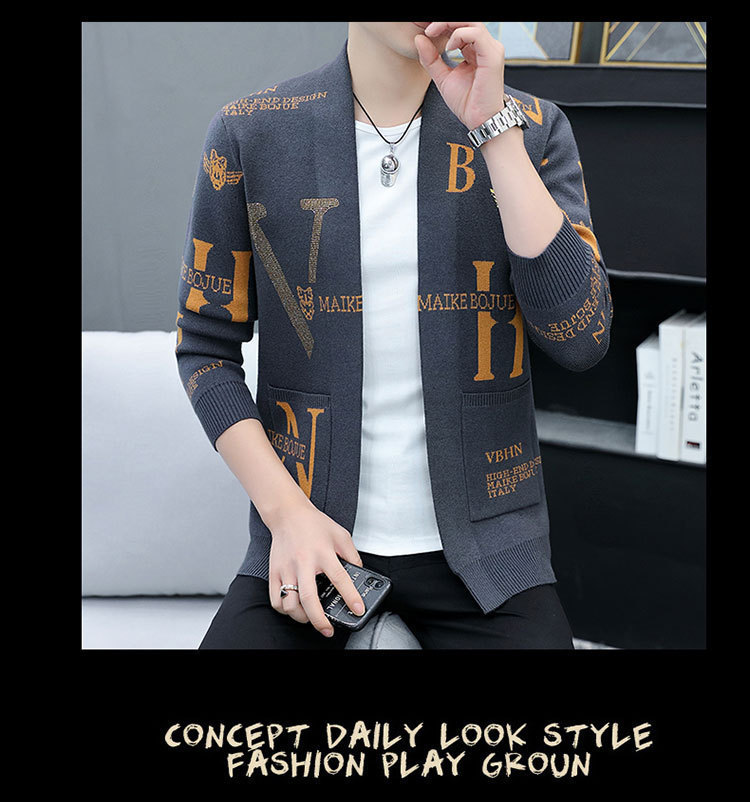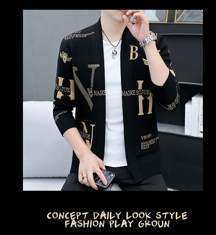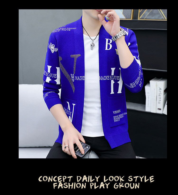남자의 봄과 가을 새로운 카디건 남자의 패션 캐주얼 니트 셔츠 긴 소매 탑 한국 유행 남자의 머리스토어 가기
