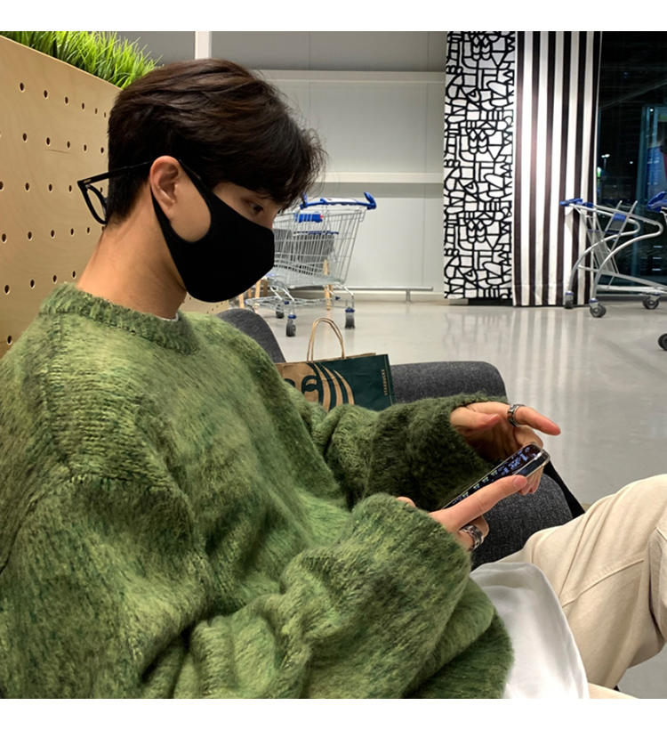 아메리칸 스타일 레트로 모헤어 그린 스웨터 남자의 가을 한국 스타일 게으른 스타일 착용 패션 브랜드 스웨터 재킷스토어 가기