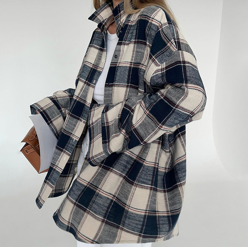 새로운 가을, 겨울 격자 무늬 긴팔 셔츠 루즈 캐주얼 게으른 스타일 대형 격자 무늬 셔츠 재킷 2025 유럽과 미국의 국경스토어 가기