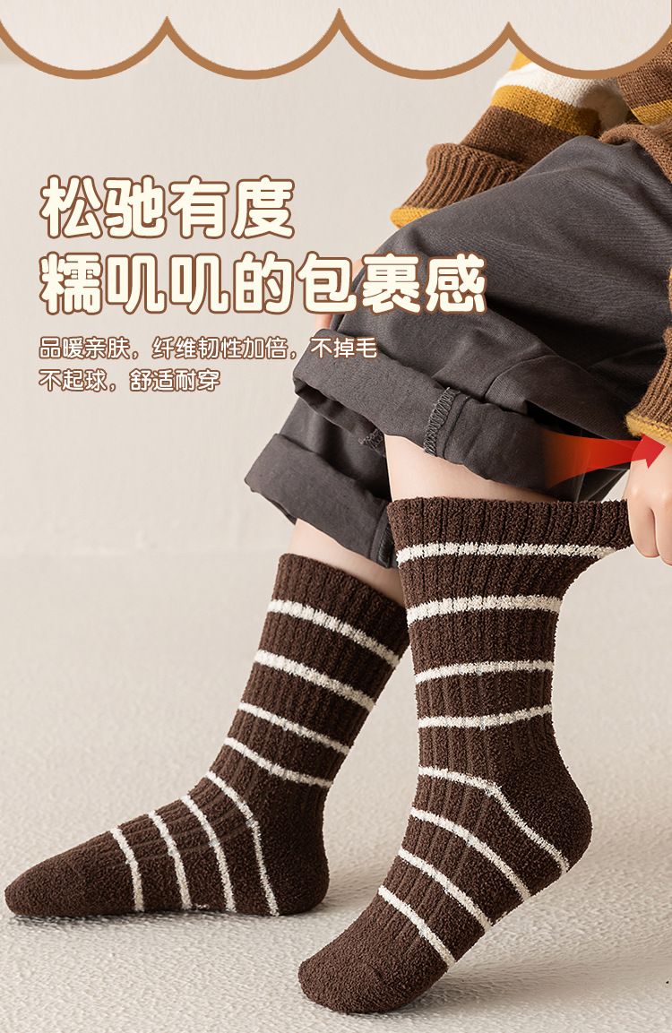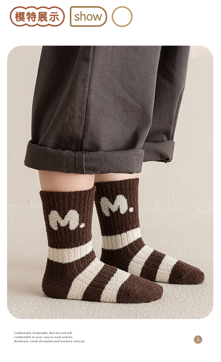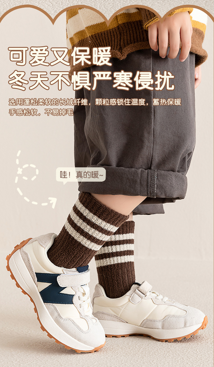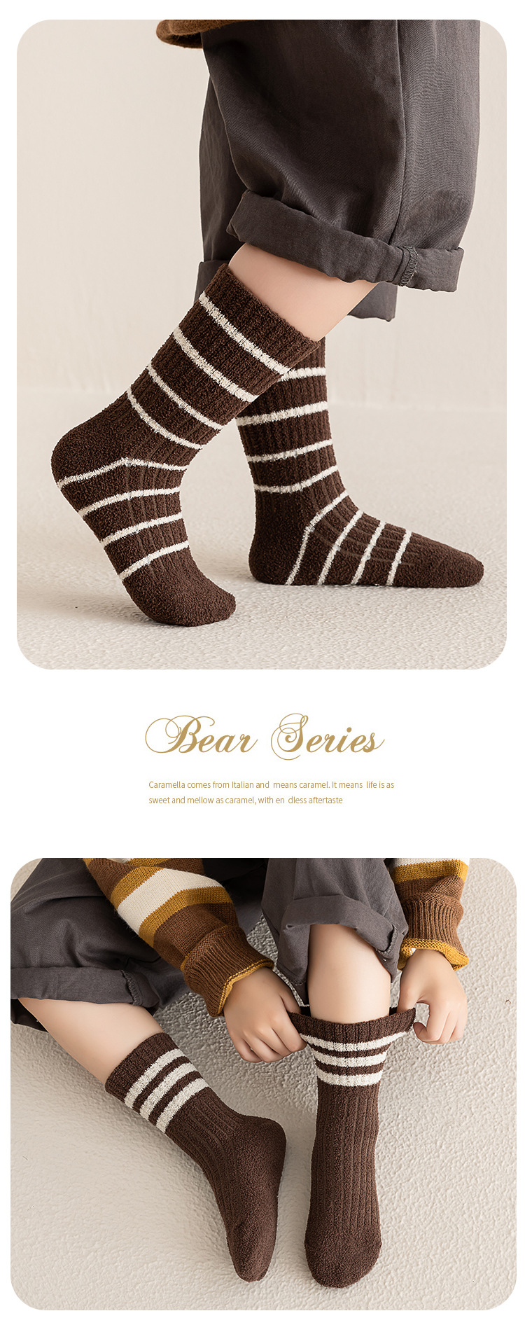 겨울 두꺼운 어린이 양말 도매 양면 벨벳 따뜻한 소년과 소녀 편지 줄무늬 학업 스타일 기모 아기 두꺼운 양말