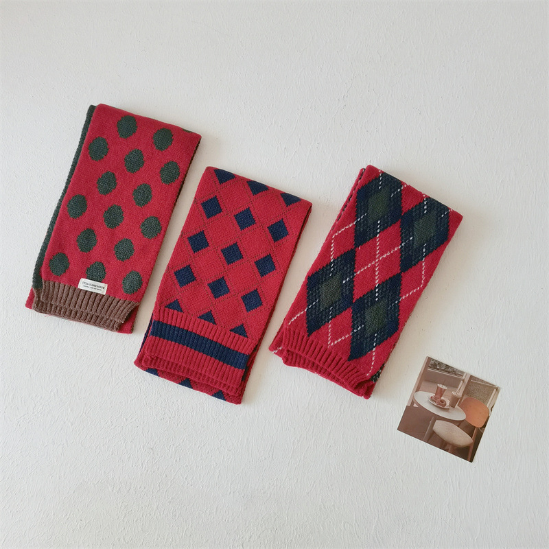 새해 빅 레드 어린이 스카프 가을과 겨울 복고풍 다목적 모조 캐시미어 목 보호 소년과 소녀를위한 따뜻한 스카프