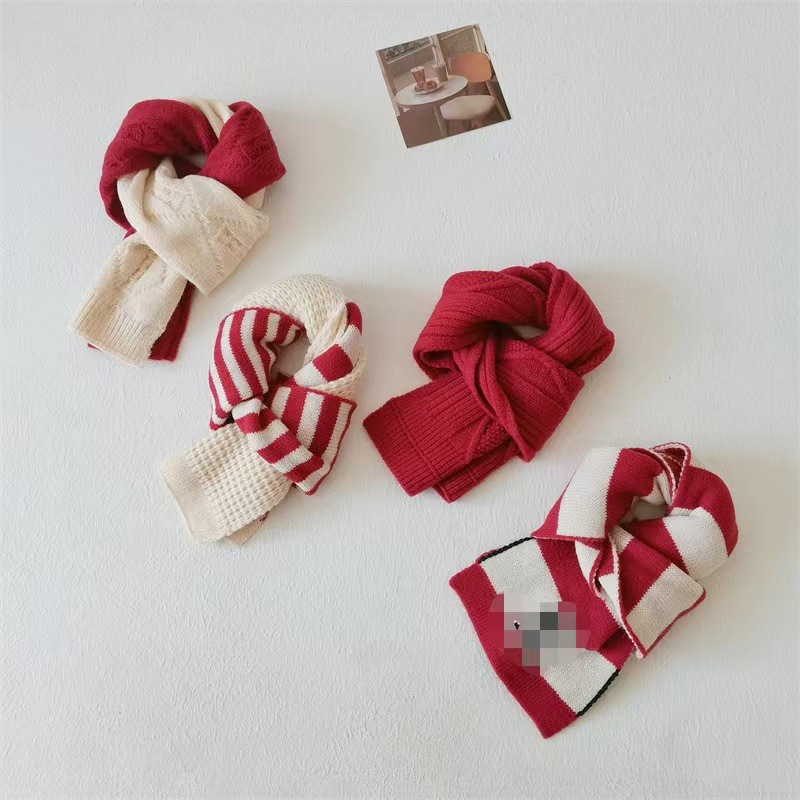새해 빅 레드 어린이 스카프 가을과 겨울 복고풍 다목적 모조 캐시미어 목 보호 소년과 소녀를위한 따뜻한 스카프스토어 가기