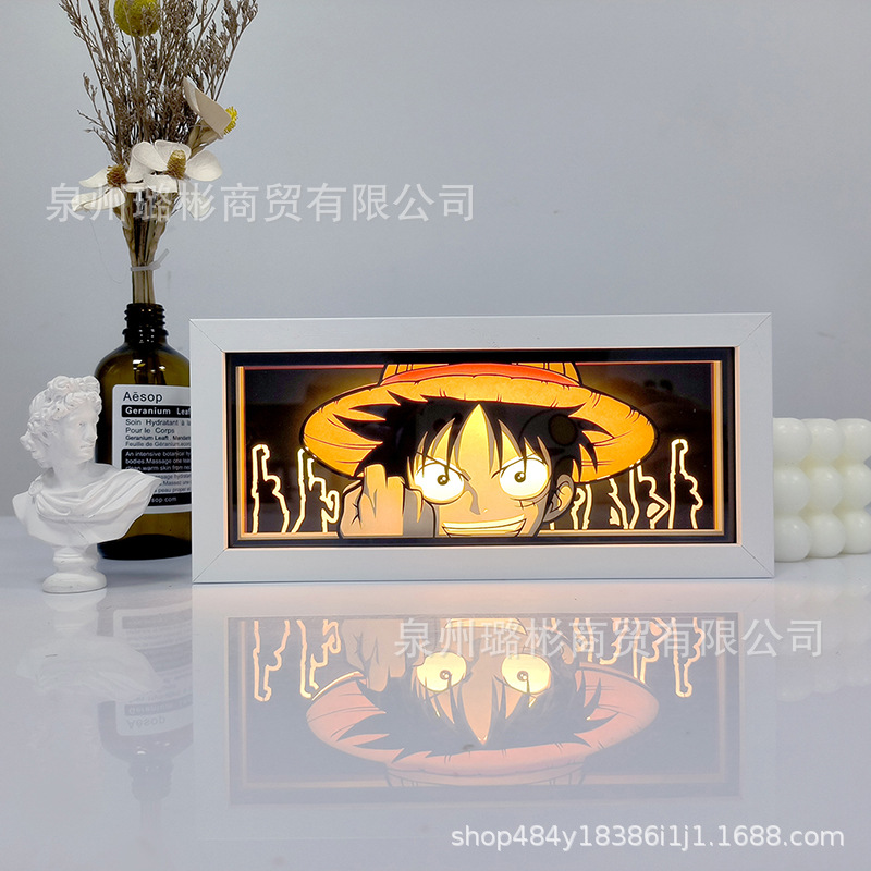 만화 종이 조각 조명 원피스 루피 데스크탑 장식품 종이 컷 조명의 날 사진 프레임 조명 침실 방 야간 조명스토어 가기