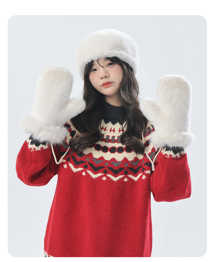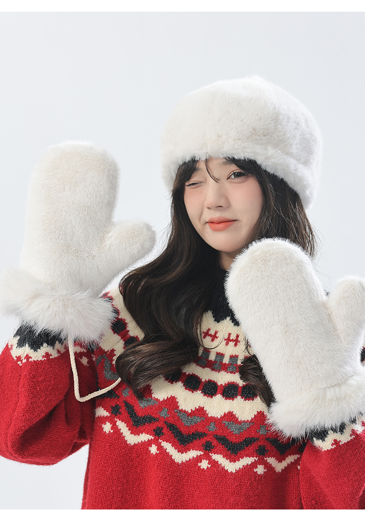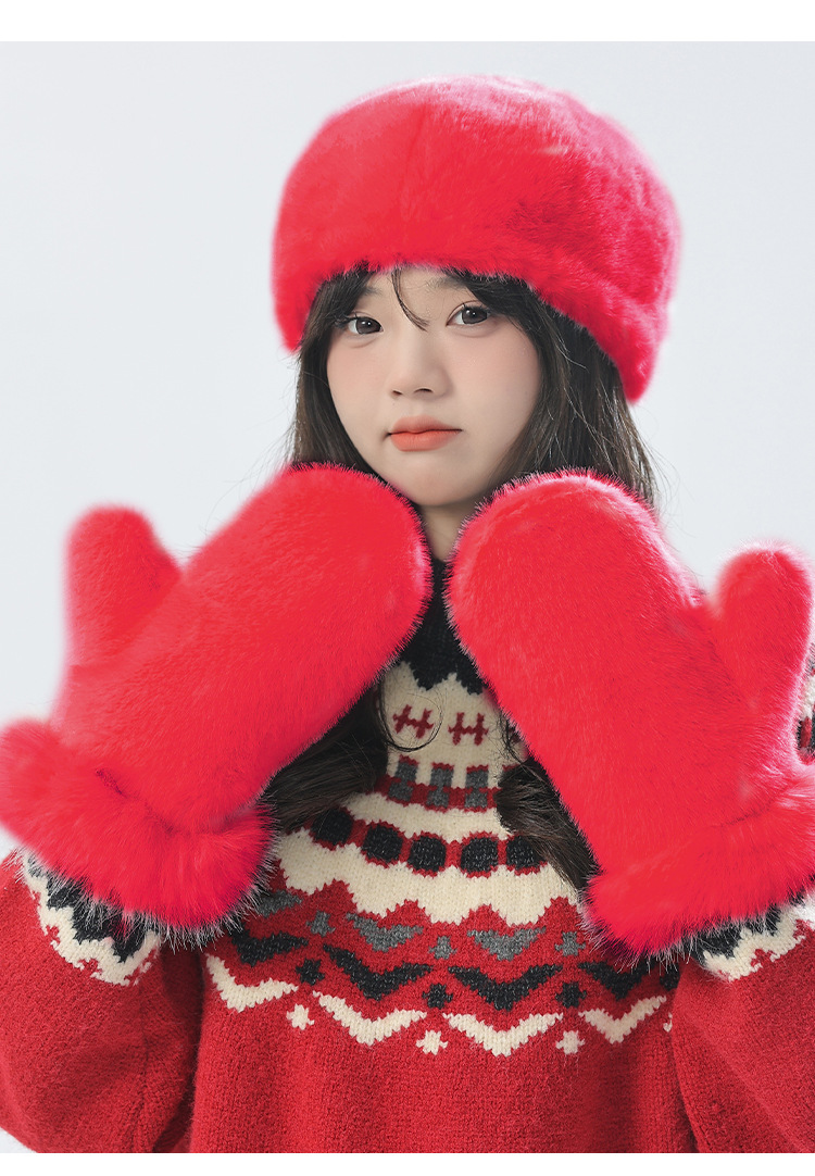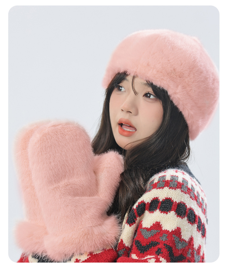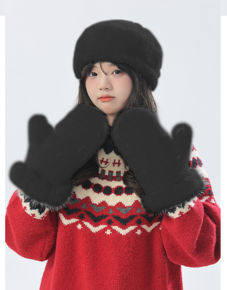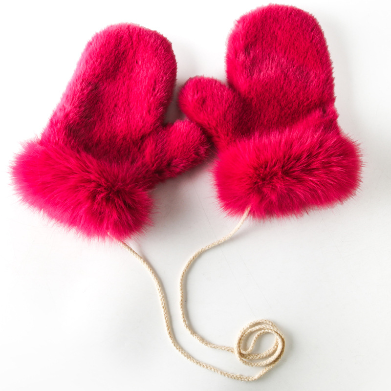 푹신한 장갑 겨울 한국 스타일 귀여운 모든 경기 학생 봉제 따뜻한 장갑 단색 밍크 머리 장갑스토어 가기