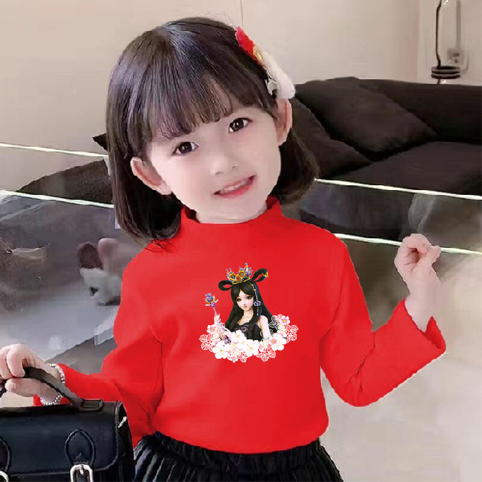 2023 독일 벨벳 가을 겨울 여아 긴팔 티셔츠 아동용 중간 및 큰 아동용 겉옷 탑 웨스턴 스타일 여아베이스 셔츠 트렌디