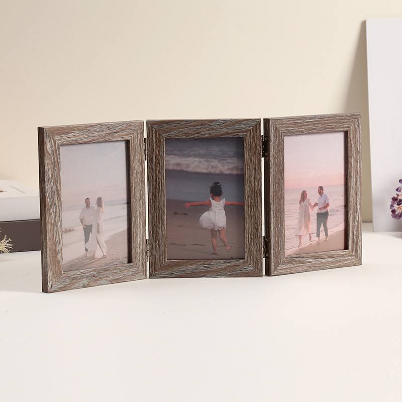 접이식 나무 사진 프레임 사진 테이블 6 인치 7 인치 양면 접이식 사진 프레임 가족 사진 기념 사진 프레임 도매스토어 가기