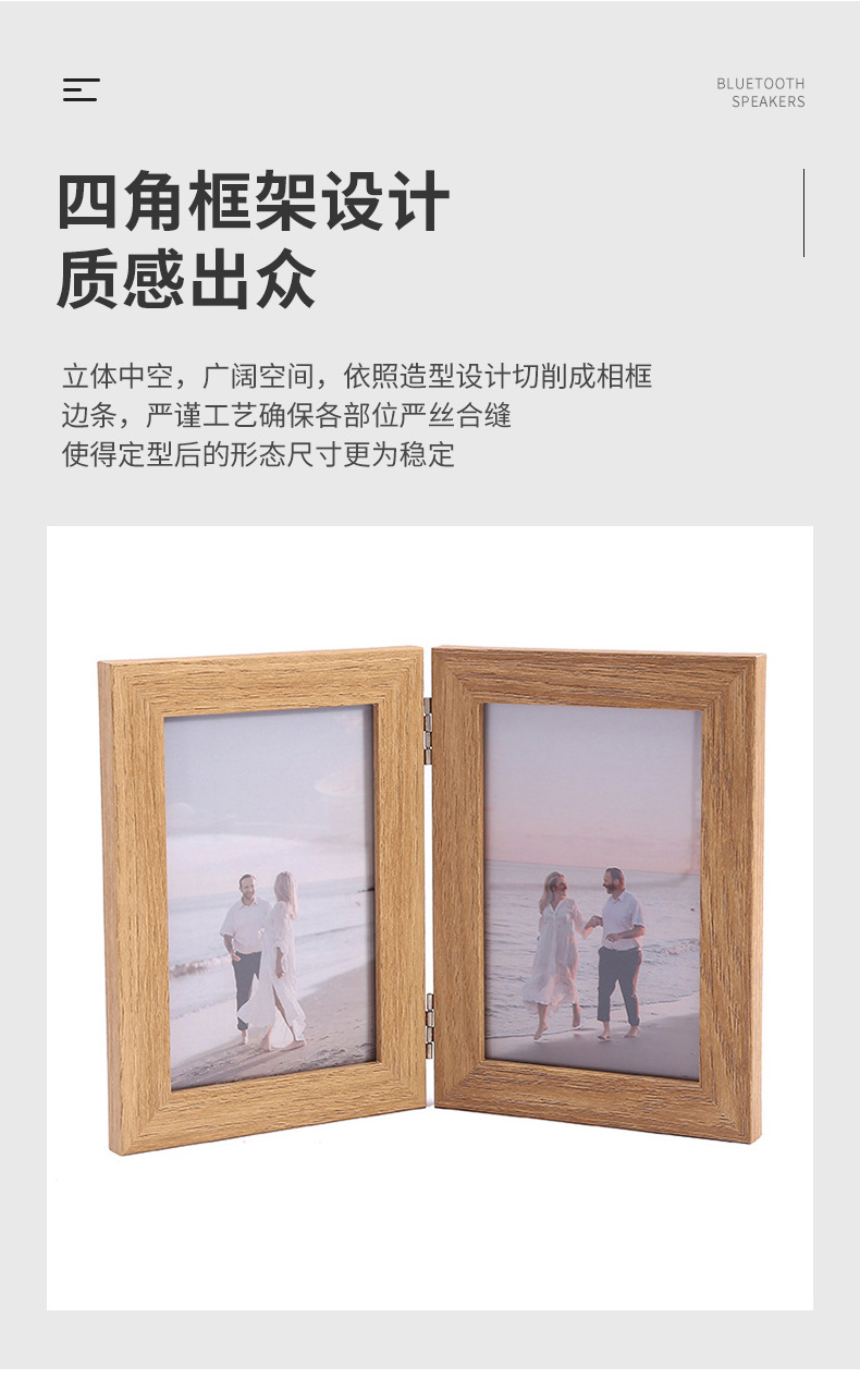 접이식 나무 사진 프레임 사진 테이블 6 인치 7 인치 양면 접이식 사진 프레임 가족 사진 기념 사진 프레임 도매
