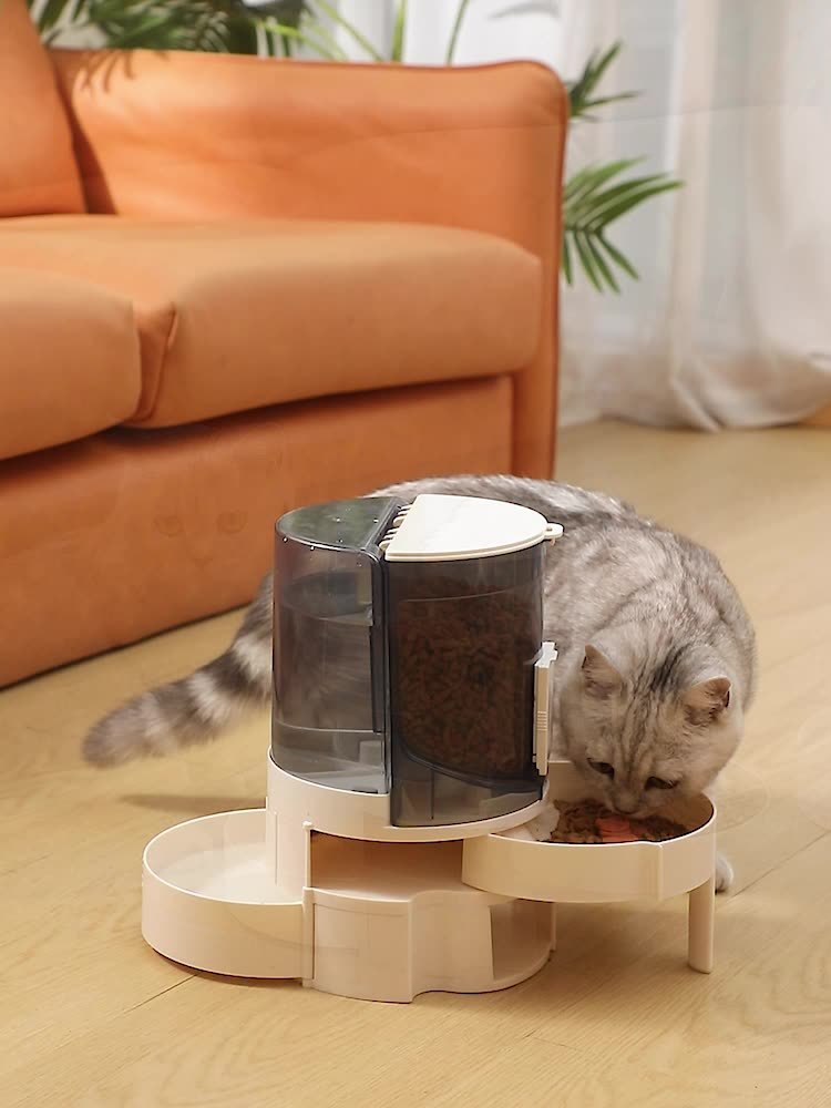고양이 개 자동 피더 건조 및 습식 분리 된 2 층 보관 노크 방지 다기능 수유 술꾼스토어 가기