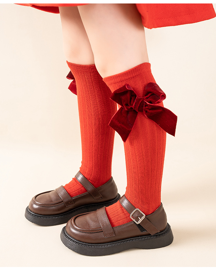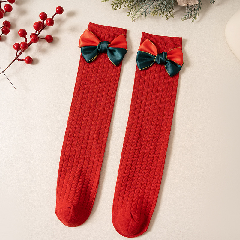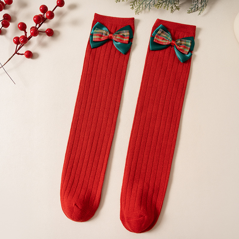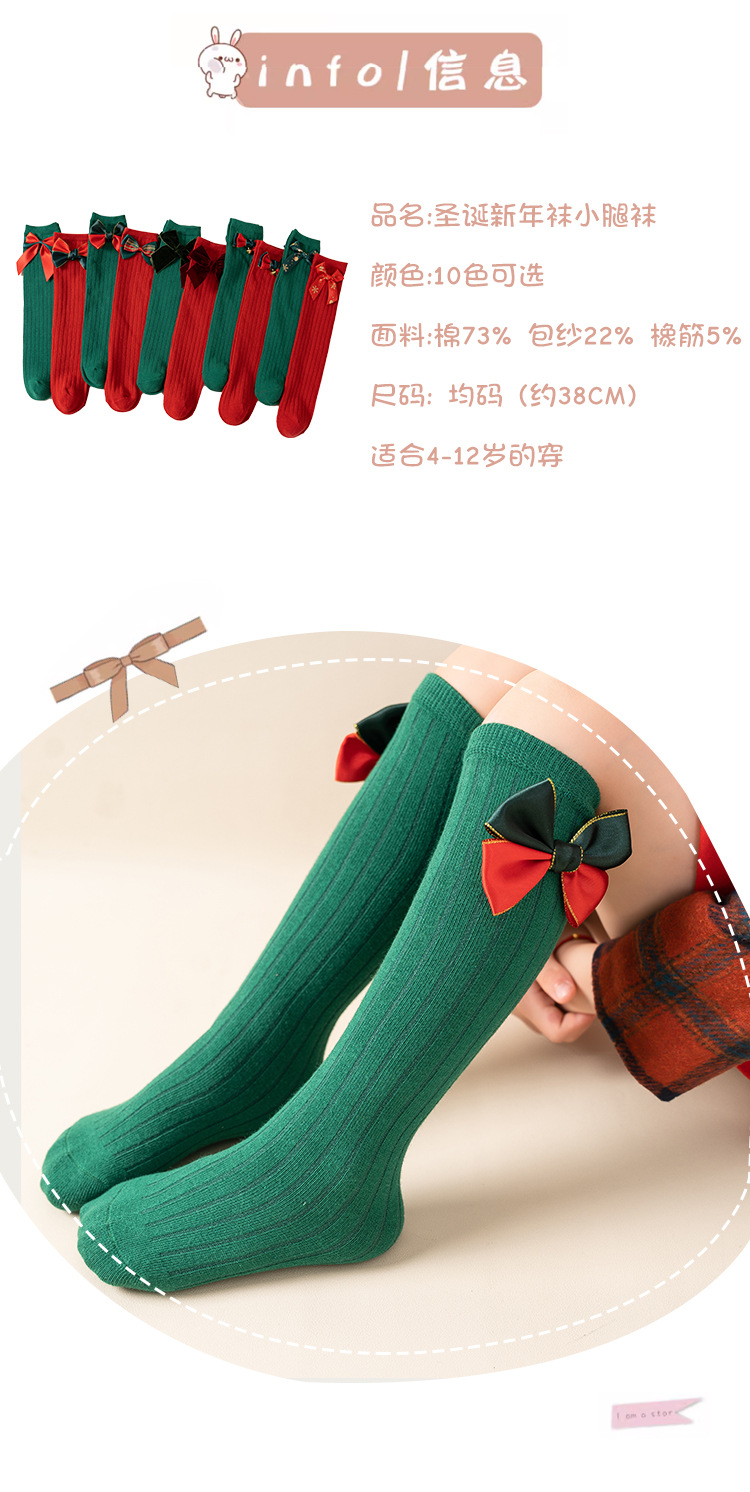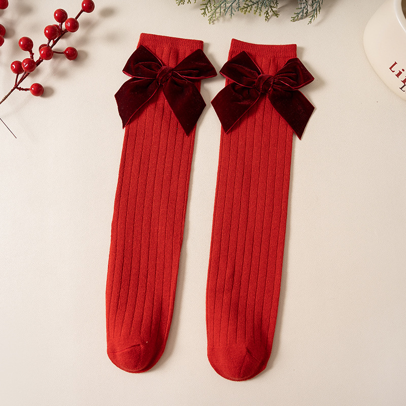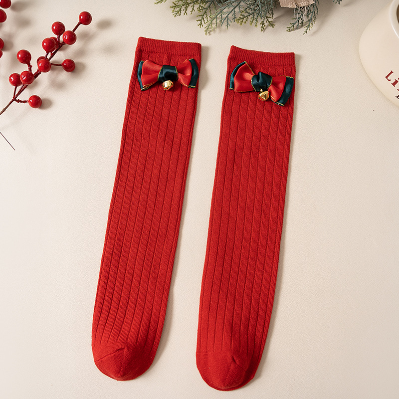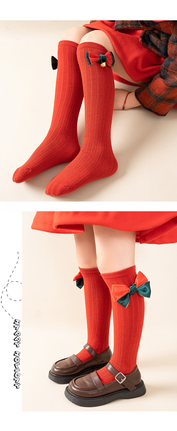 여아 양말 봄과 가을 어린이 새해 빨간색 중간 길이 양말 어린이와 학생을위한 크리스마스 긴 길이 양말