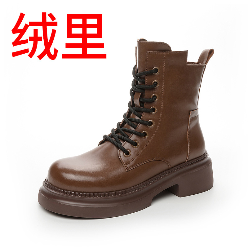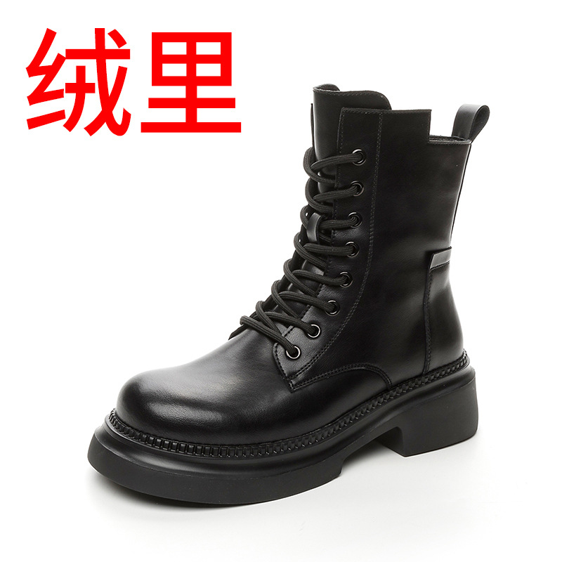 엄격하게 선택된 폼 바닥 레이스 업 정품 가죽 마틴 여성용 2023 가을과 겨울 새 지퍼 짧은 부츠 두꺼운 굽 중간 배럴 부츠스토어 가기