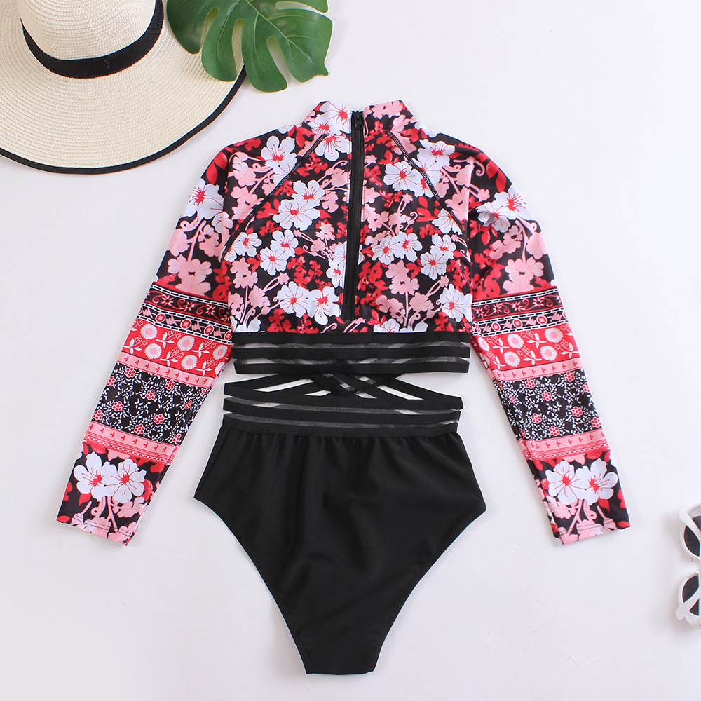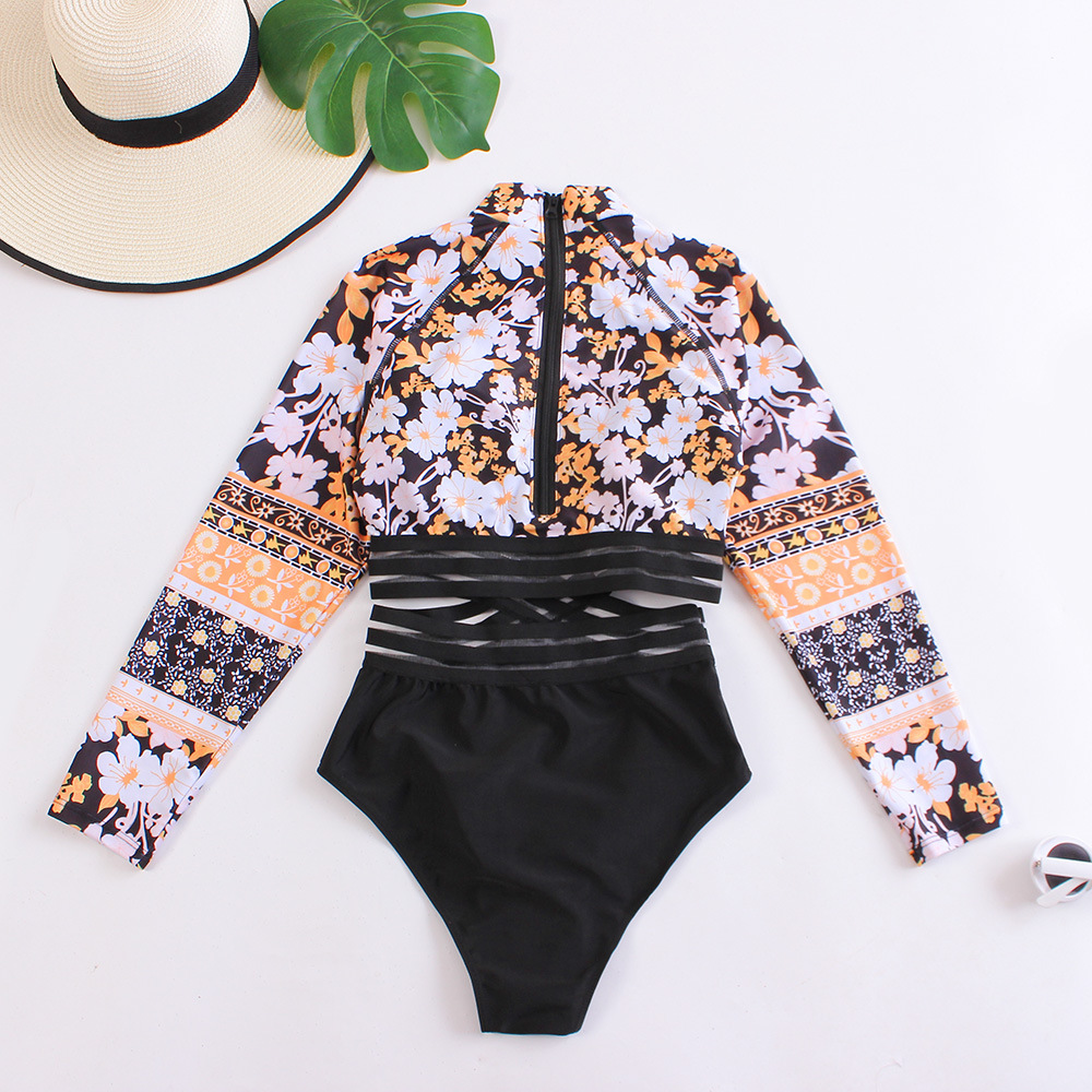 2025 섹시 비키니 여성 원피스 수영복 디지털 프린트 긴팔 자외선 차단 하이웨이스트 팬츠 수출용 하이웨이스트 슬림핏