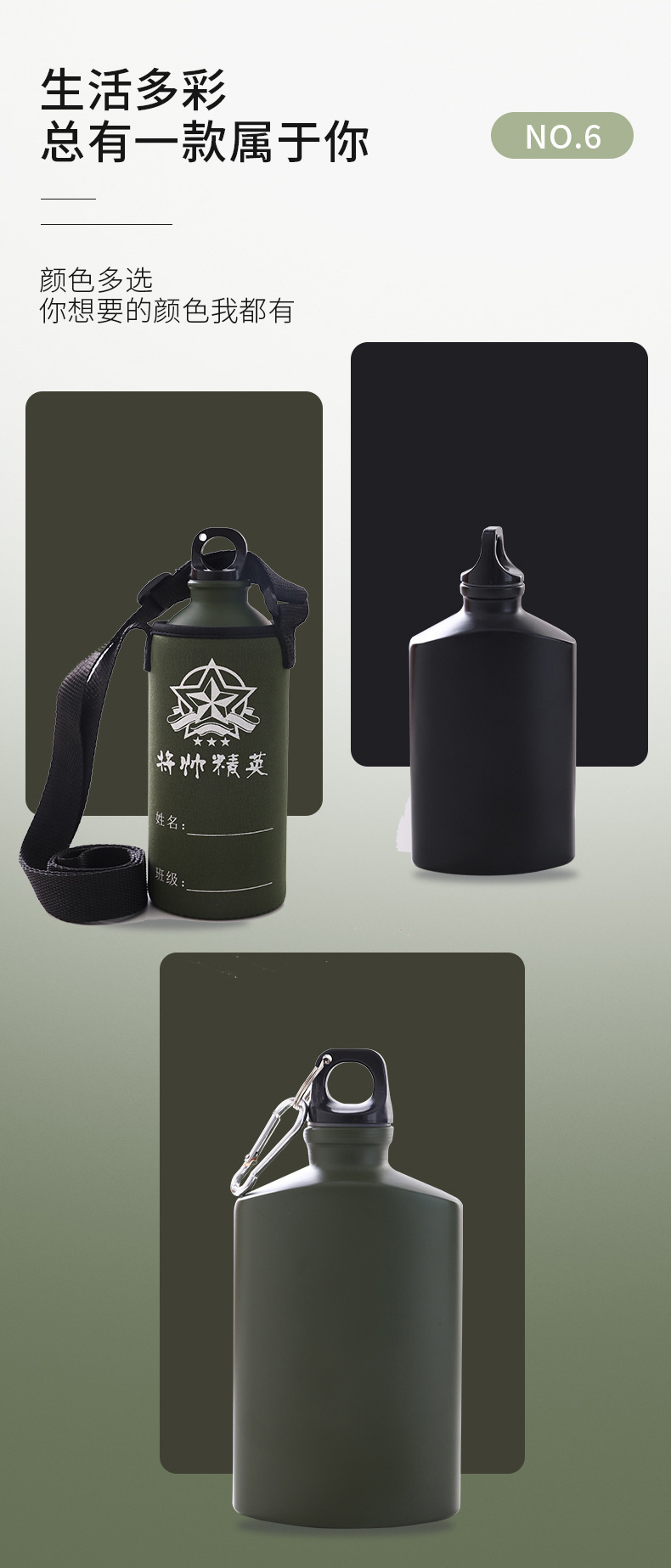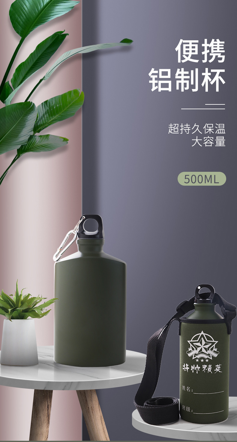 여름 캠프 군사 훈련 야외 등산 알루미늄 주전자 휴대용 스포츠 주전자 높은 색상 값 스테인레스 스틸 진공 보온병 컵