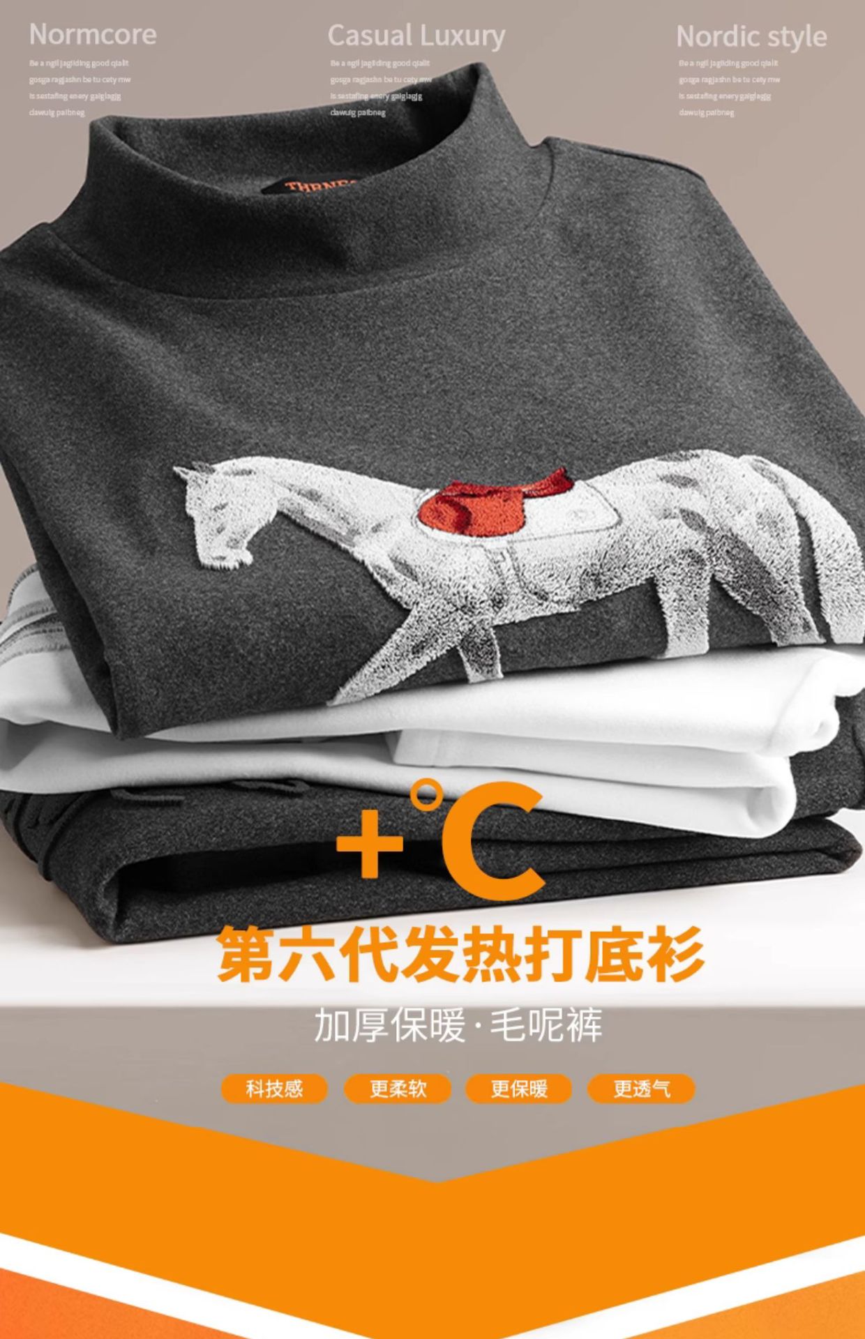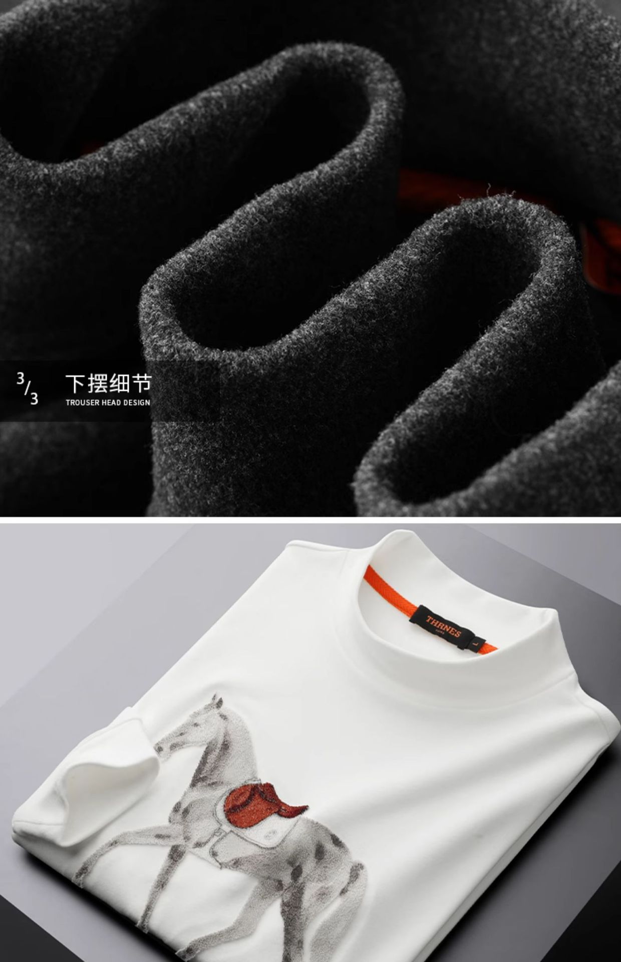 유럽식 가벼운 럭셔리 가을과 겨울 캐주얼 긴팔 티셔츠 스웨터 남성용 따뜻한 벨벳 칫솔 수 놓은 말 하프 터틀넥 탑