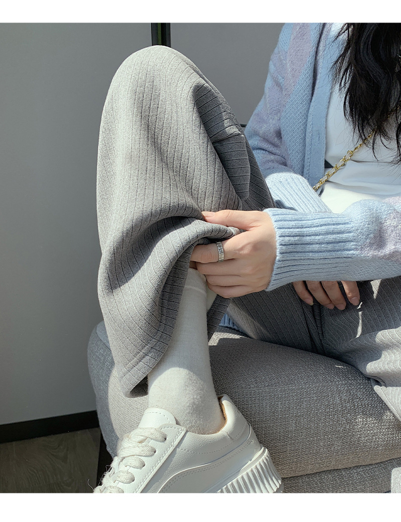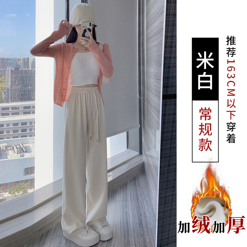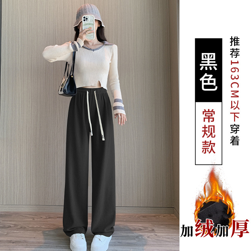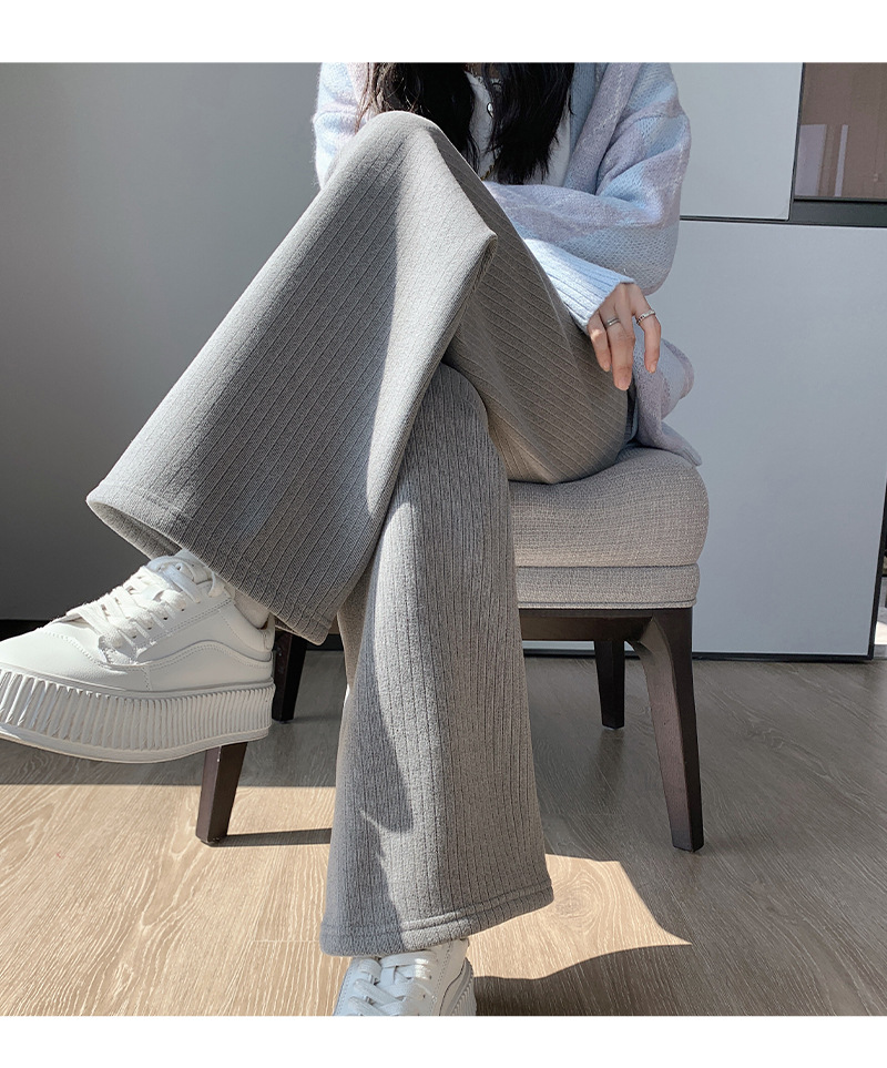 기모 니트 와이드 레그 팬츠 여성의 가을과 겨울 게으른 스타일 소프트 왁스 도징 캐주얼 바지 하이 웨이스트 스트레이트 좁은 길이 바지